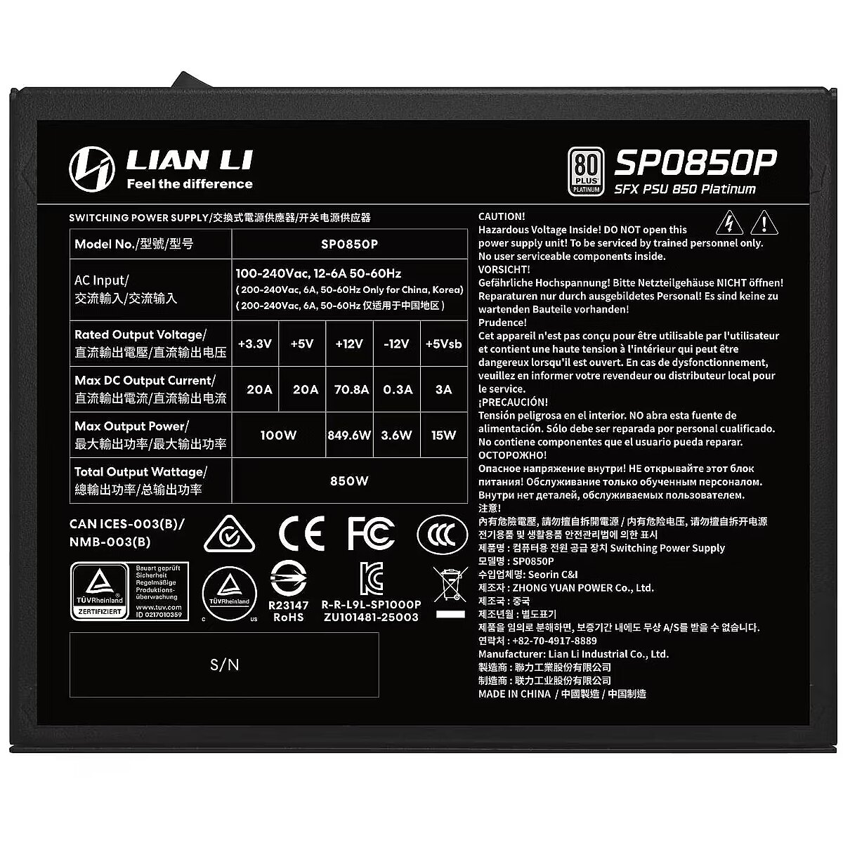 Lian Li SP Platinum, 850W, 80PLUS Platinum, SFX, ATX 3.1, PCIe 5.1