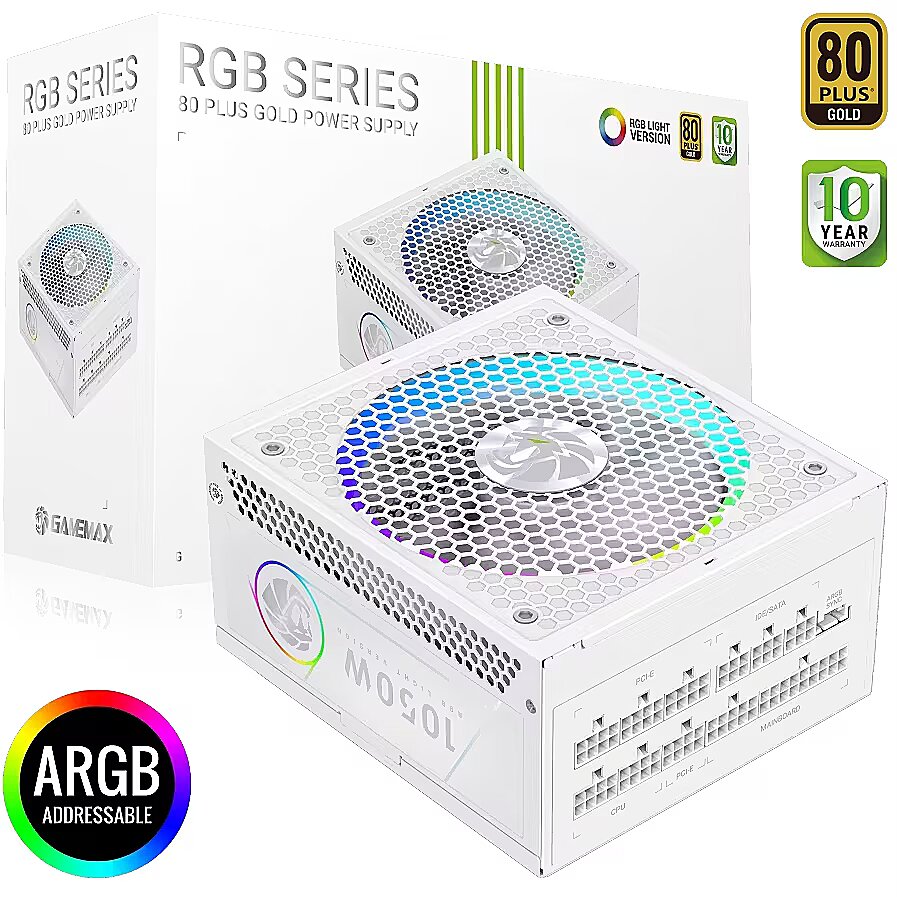 Gamemax RGB 1050G WH, 1050W, 80PLUS Gold