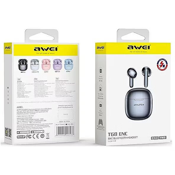Description - AWEI TWS Charging Base Headset with ENC and Bluetooth 5.3 Supports professional tuning and highly elastic composite diaphragms to create a natural stereo field, enhance the stability of sound quality, and reduce acoustic resonance and THD (total harmonic distortion) to improve sound clarity. It has Bluetooth 5.3, which enhances resistance to electromagnetic interference, no jams or disconnections, fast transmission and low power consumption for audio playback.