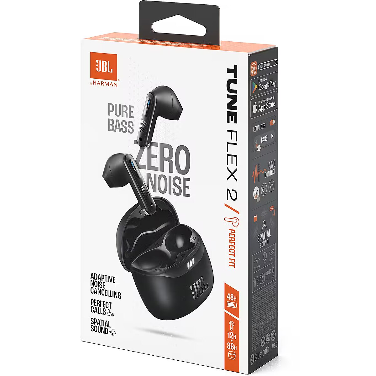 Start your day song by song with the JBL Tune Flex 2 wireless headphones, equipped with adaptive noise cancellation. These headphones deliver up to 48 hours of exceptional JBL Pure Bass sound and JBL Surround Sound, while the ergonomic (and water and dust resistant) design ensures all-day comfort in all weather conditions. Enjoy crystal clear calls without background noise and conveniently control the headphones with touch-sensitive buttons. With adaptive noise cancellation and Smart Ambient technology, you can choose to completely isolate yourself from the outside world or let it partially surround you. With the JBL Headphones app, you can personalize your audio experience and tune the sound to your liking with Personi-Fi 3.0. Put on the JBL Tune Flex 2 and experience the world exactly the way you like it. 12mm drivers with powerful JBL Pure Bass Sound and surround sound Adaptive noise cancellation with Smart Ambient technology blocks out noise while allowing you to stay aware of your surroundings 6 integrated microphones for clear hands-free calls Up to 12 hours of listening time, plus three charges (36h) from the charging case Multi-point connection – pair the headphones with two devices simultaneously and switch seamlessly between them IP54 dust and splash-proof headphones and IPX2 splash-proof charging case JBL Headphones app