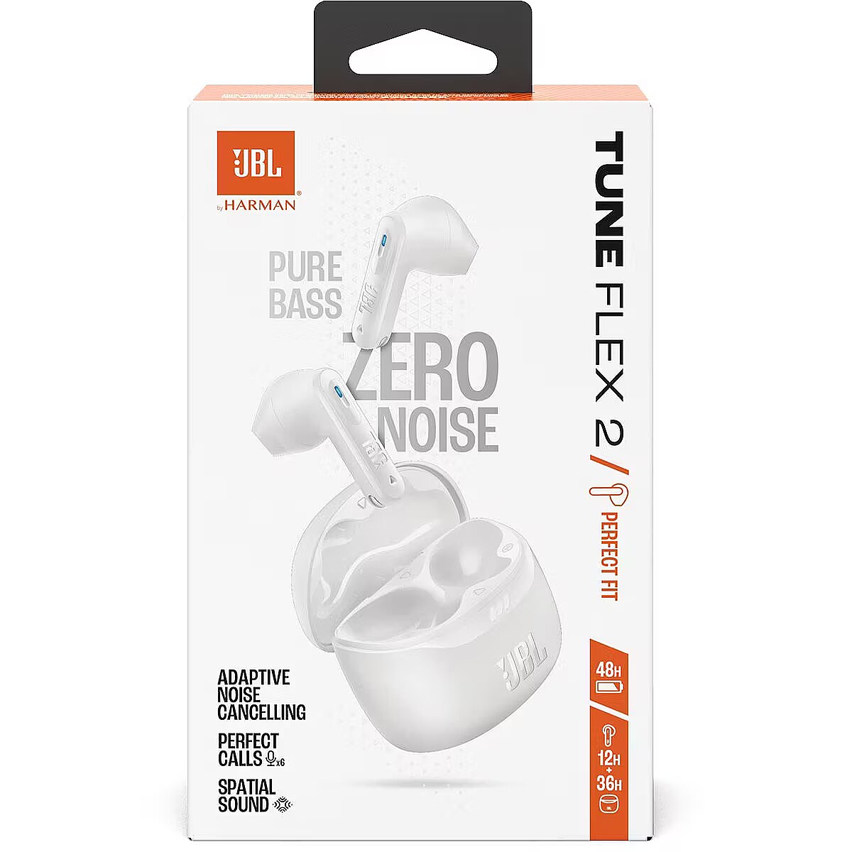 Start your day song by song with the JBL Tune Flex 2 wireless headphones, equipped with adaptive noise cancellation. These headphones deliver up to 48 hours of exceptional JBL Pure Bass sound and JBL Surround Sound, while the ergonomic (and water and dust resistant) design ensures all-day comfort in all weather conditions. Enjoy crystal clear calls without background noise and conveniently control the headphones with touch-sensitive buttons. With adaptive noise cancellation and Smart Ambient technology, you can choose to completely isolate yourself from the outside world or let it partially surround you. With the JBL Headphones app, you can personalize your audio experience and tune the sound to your liking with Personi-Fi 3.0. Put on the JBL Tune Flex 2 and experience the world exactly the way you like it. 12mm drivers with powerful JBL Pure Bass Sound and surround sound Adaptive noise cancellation with Smart Ambient technology blocks out noise while allowing you to stay aware of your surroundings 6 integrated microphones for clear hands-free calls Up to 12 hours of listening time, plus three charges (36h) from the charging case Multi-point connection – pair the headphones with two devices simultaneously and switch seamlessly between them IP54 dust and splash-proof headphones and IPX2 splash-proof charging case JBL Headphones app