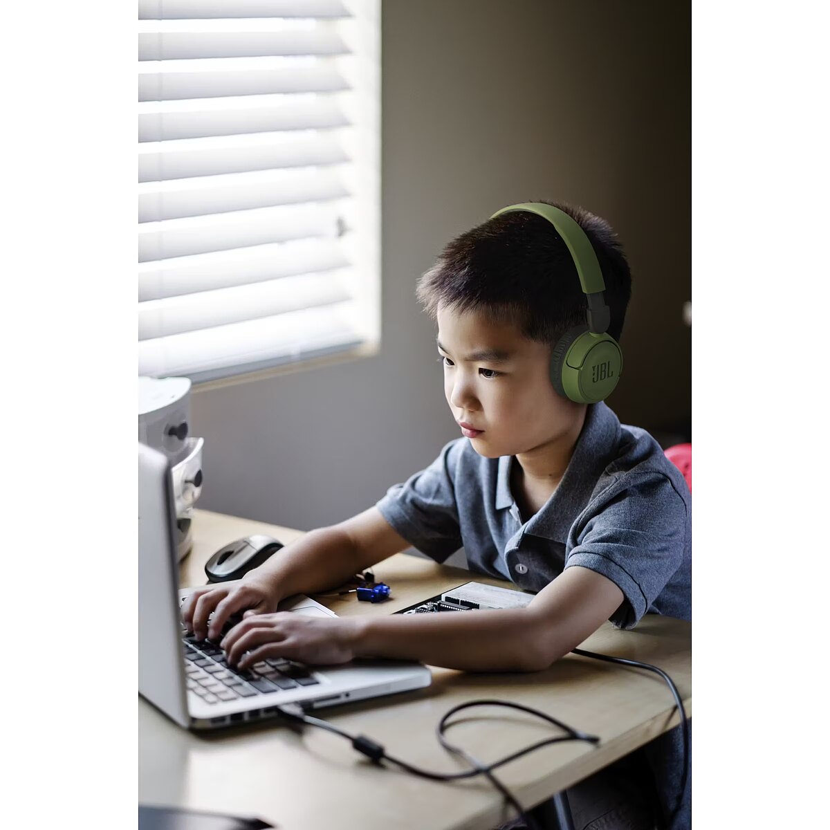 LongDesc - Safe, lightweight and sized for kids, the JBL Jr310BT wireless headphones safely deliver up to 30 hours of legendary JBL sound and fun for the youngest music fans. Headphones are designed to never exceed 85dB to protect hearing, with controls that can be easily operated by the children themselves. Kids listen in comfort with custom designed soft padded headband and ear cushions for a soft fit. And every headphone is different as the JBL Jr310BT can be customized with the available, reusable stickers for even more fun!JBL Safe SoundJBL legendary sound designed to never exceed 85dB making them safe for even the youngest music fans.Bluetooth enabledA wireless connection up to 15 meters away means no wires to worry about. Built-in micHelp your kids stay connected to the world with the built-in mic. They can chat easily with friends and family during downtime, or teachers while they’re busy learning.30-hour battery life30-hour battery life and quick-recharge with user-friendly USB type C. And for a super quick top-up, get 2 hours of battery life with 5 minutes charge.Easy controlsChild-friendly control buttons make it easy and safe for children to operate.Comfort fitSoft padded headband and ear cushions for a feathery fit.Ultra-portableThe compact and foldable design combined to make music highly portable.Make it yours – JBL Sticker setKids can personalize the headphones with the stickers set in the box.