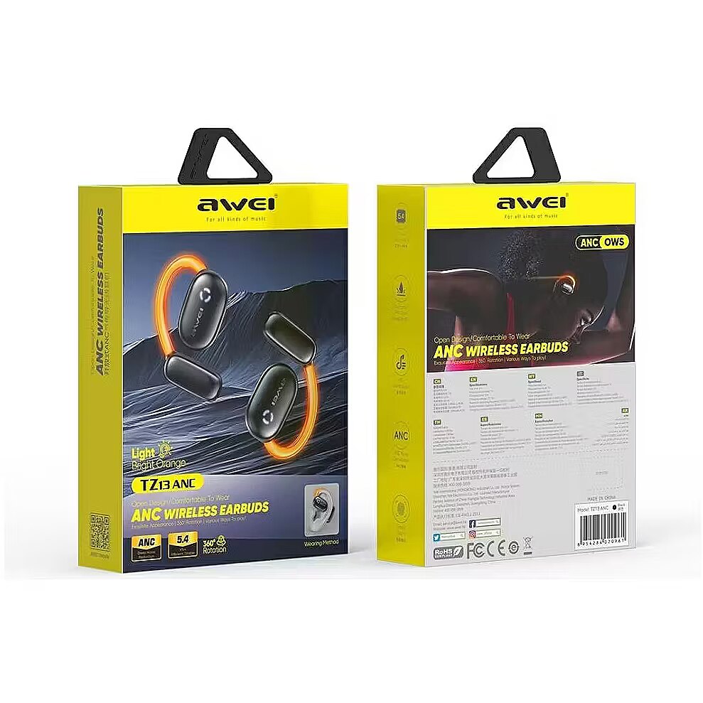 Description - AWEI TZ13 ANC Bluetooth Headphones Dynamic sound effects These headphones offer exceptional sound quality that mimics the experience of a live concert. Thanks to the technology used, sound becomes clearer, with crisper highs, a fuller mid-range, and deeper bass. Enhanced musical details create an incredibly immersive experience. This is the perfect solution for those who value exceptional sound quality and want to feel like they're at a concert, even while on the go. Comfortable design Awei headphones are designed for maximum comfort. Their insertion-free design significantly improves comfort during extended wear. This makes them ideal for everyday use, offering all-day comfort. Additionally, flexible, comfortable ear hooks ensure the headphones remain securely in place even during intense physical activity. Active noise reduction The TZ13 ANC model features active noise cancellation technology, which allows for comfortable use even in noisy environments. This feature effectively eliminates external sounds, allowing for complete immersion in your music. This is an ideal solution for those who frequently travel or work in noisy environments and need peace and concentration. High quality workmanship The Awei TZ13 ANC headphones are made of materials that ensure durability and resistance to damage. Modern manufacturing technologies and attention to detail make the product robust and resistant to everyday wear and tear. Furthermore, the use of soft-touch materials enhances comfort while providing an elegant look, perfect for everyday use or as a gift. Convenient charging The Awei TZ13 ANC headphones offer a charging function using an innovative fidget spinner case. This feature not only provides convenient storage for the headphones but also provides a way to relieve stress. The charger's design allows for easy charging in any situation. Thanks to their compact size and functionality, the headphones become even more practical and convenient, both for everyday use and on the go.
