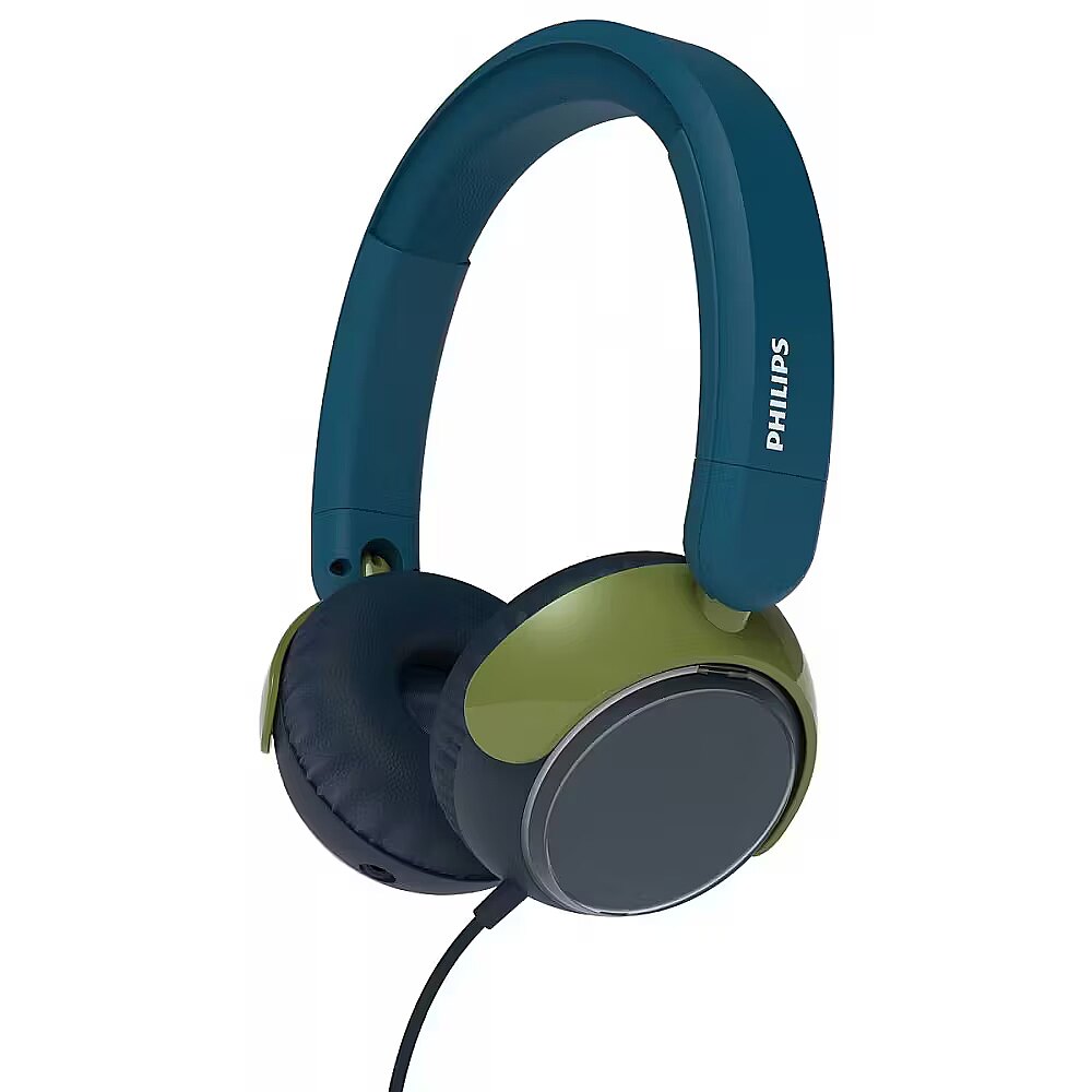 LongDesc - Always safe, always fun. Volume limited to 85 dBSpecially designed to be safe for young ears, these headphones have been volume limited to 85 dB. Music, cartoons, movies, educational videos: whatever they’re into, you can relax knowing they won’t be listening too loud.Kid-friendly comfort and easy to useSmaller ear cups with soft ear-cup cushions keep these lightweight headphones comfortable for kids. The cushioned headband also adjusts easily for the perfect fit and features dots on the back that help children see which way around to put the headphones on.Colorful design with customizable ear cupsThe multi-colored design makes the headphones stand out in all the right ways—and kids can customize their headphones using their own works of art! Simply lift the transparent ear-cup window, add their drawings or paintings, and click the window closed again.Audio sharing for double the funA built-in audio-sharing port means you can daisy chain these headphones so kids can listen together from the same device. Simply connect a standard 3.5 mm headphone cable to the audio-sharing port on these headphones, then plug the other end of the cable into the headphone socket on the second pair of headphones.Tough, durable, and foldableMade from durable, non-toxic materials, these headphones are built to withstand the rigors of daily use by kids. When not in use, they can be folded flat for easy storage in a drawer. Or you can fold them flat and inwards, creating a compact bundle that easily fits into pockets and bags.Compatible with most devices. 3.5 mm to USB-C cable in boxThese wired headphones connect to devices via USB-C, which makes them compatible with most laptops, phones, and tablets. The detachable USB-C headphone jack adapter with attached 3.5mm cable is included in the box.Clear calls with friends and familyA built-in microphone lets kids take calls with family and friends. A dedicated mic picks up the sound of their voice, while a noise-reduction algorithm quietens some of the background noise from the world around them.Warm, natural sound. Philips sound signatureMovies to music, they’ll love what they hear! These on-ear kids’ headphones feature large 32 mm drivers, tuned to the Philips sound signature. Whatever they’re into, they’ll enjoy a warm, natural sound with deep bass.Thoughtful design. Responsible packagingThese headphones feature recycled materials, while our plastic-free packaging uses FSC-certified recycled cardboard and soy-based ink. To avoid shipping unwanted cables, the 3.5 mm standard audio cable required to daisy chain headphones is not included in the box.