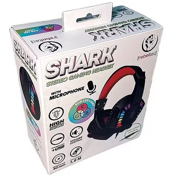 Description - REBELTEC SHARK Headphones Hear More, React Faster!!! Immerse yourself in the game with the REBELTEC SHARK gaming headphones, created for gamers who demand excellent sound and full compatibility. The SHARK model was designed as a dedicated solution for smartphones, consoles, tablets, laptops, and PCs, so you can enjoy the same audio quality on every platform. At the heart of the headphones are high-quality 40mm drivers that guarantee crystal-clear sound, crisp dialogue, and dynamic bass. A wide frequency response of 20 Hz 20 kHz, a sensitivity of 108 3 dB, and an impedance of 32 15% ensure realistic sound reproduction from quiet enemy footsteps to powerful explosions. For complete convenience, the headphones are equipped with a volume control knob, allowing for quick volume control without interrupting gameplay. The foldable microphone boom allows for easy communication with your teammates or easy storage when not in use. Eye-catching RGB lighting highlights the SHARK's gaming character, while the 4-pin 3.5mm mini jack (audio and microphone in one) ensures simple and versatile operation. The 1.8m cable allows for freedom of movement, and the 239g weight makes the headphones comfortable even during long gaming sessions. The REBELTEC SHARK combines style, comfort, and excellent sound the perfect choice for gamers who want to hear every detail and always stay one step ahead of their competitors. Specifications: Designed for smartphones, gaming consoles, tablets, laptops, and PCs High-quality drivers guarantee crystal-clear sound Driver diameter: 40mm Volume control knob Foldable microphone boom RGB backlight 4-pin 3.5mm mini jack (in/out in one connector) Frequency response: 20Hz-20kHz Impedance: 32 15% Sensitivity: 1083dB Cable length: 1.80.1m Net weight: 239g Headphone size: 190 x 170 x 90mm Logistics data: Individual packaging: 1 pc., dimensions: 200 x 175 x 93mm, weight: 342g, EAN code: 5902539602661 Collective packaging: 40 pieces, dimensions 740 x 495 x 450 mm, weight 15.1 kg, EAN code: 5902539602678