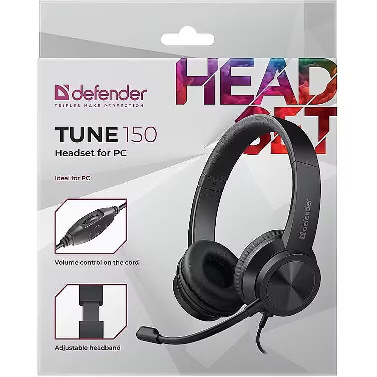 Description - Tune 150 Computer Headset with Microphone. Lightweight headphones featuring an adjustable headband, soft ear cushions, and volume control.