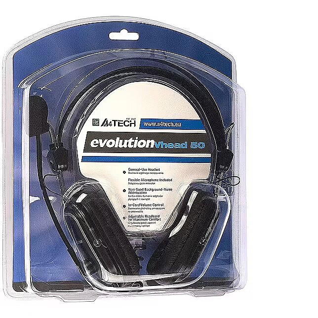 Description - A4-TECH Vhead EVO 50 is a high quality wired headset with microphone for general use. Voice control and switch the microphone placed on the cable. The microphone on a flexible boom and designed to minimize noise from the surroundings will ensure a good quality of communication. Headphones with very good sound damping with adjustable spacing. Connecting cable with a length of 2 m.