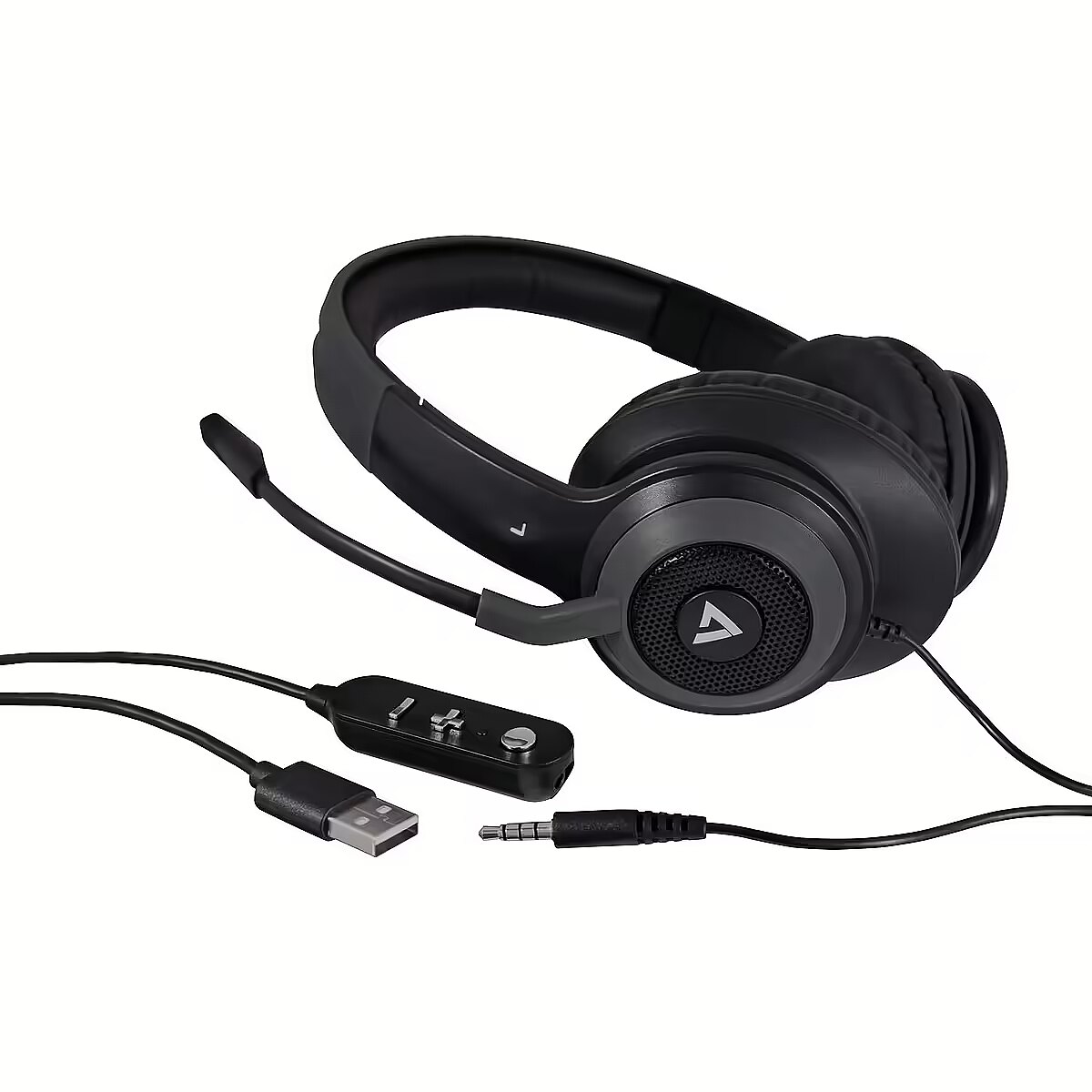 LongDesc - Enjoy amazing sound for calls and music, with V7's Premium Over-Ear Stereo headset. Connect through a 3.5mm audio jack or the detachable USB control unit for easy call management with integrated volume and mute control.Designed to limit outside distractions though passive noise cancellation. Features a omni-directional boom style microphone with a 300° range for use on right or left side wear and when not in use, the mic can be positioned next to the headband and out of the way.Added features include memory foam ear pads and headband to provide comfort during extended use.Premium Stereo Headset works with all popular online voice and video conferencing services including Skype, WebEx, MS-Teams and other popular voice applications.