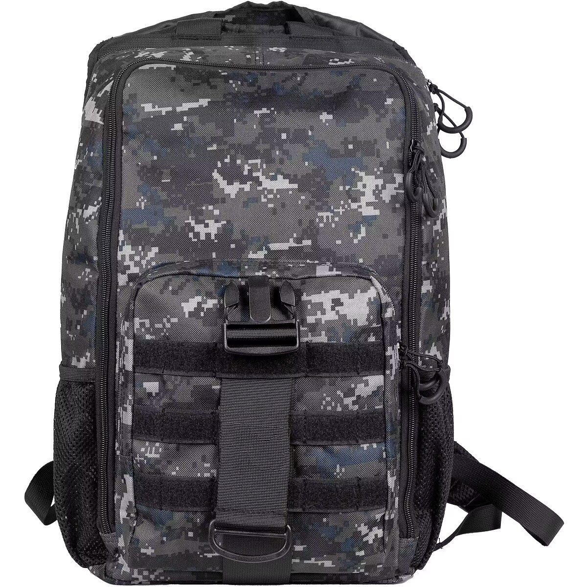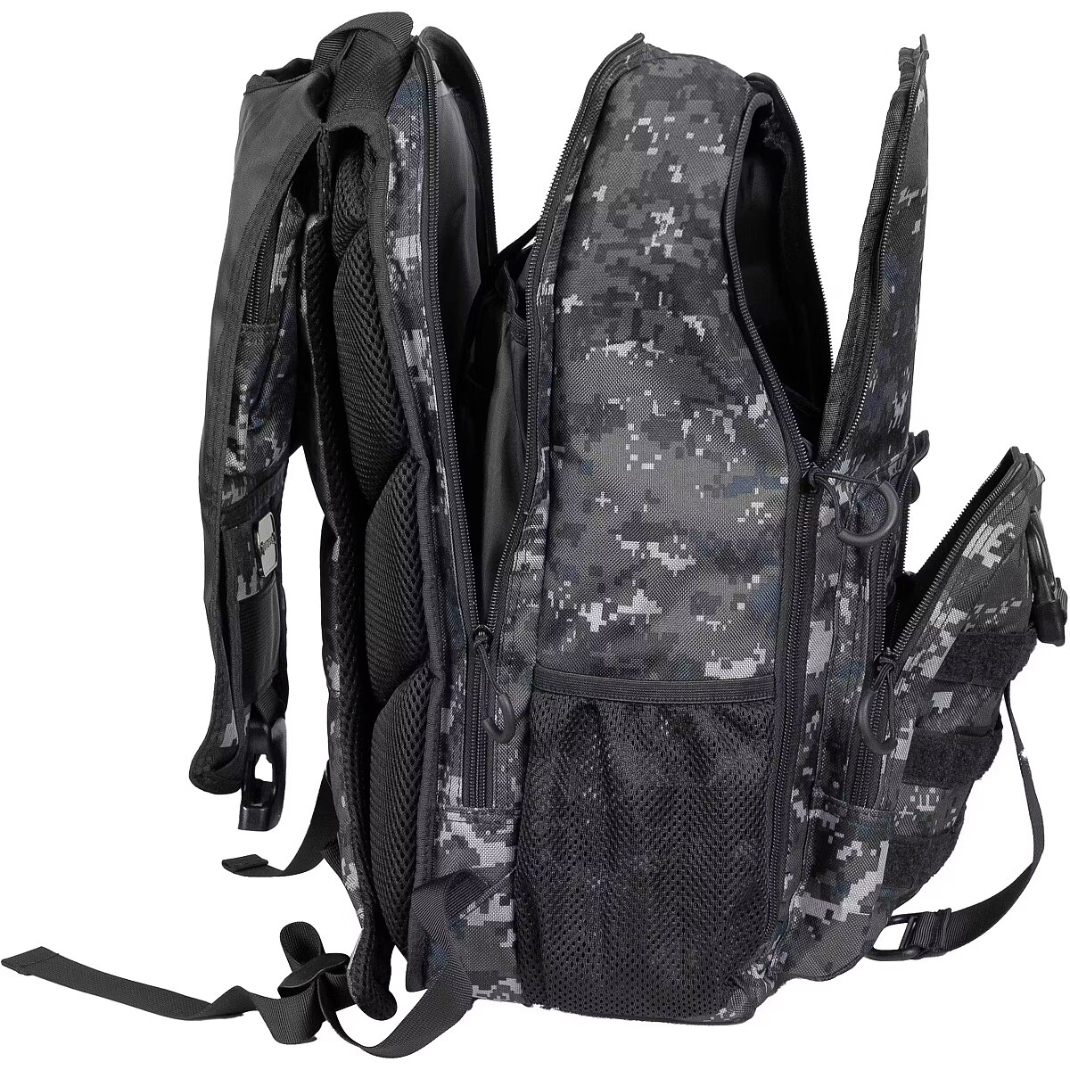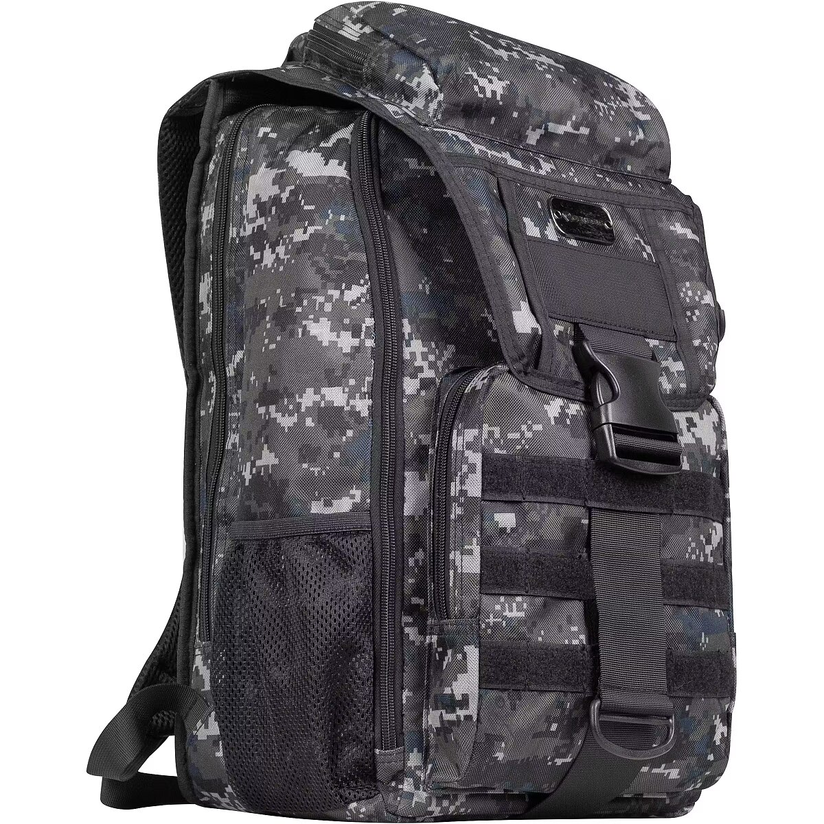 Spacious backpack in military design, which fits notebooks up to 15,6. Sturdy and durable construction with comfortable and roomy space for all gaming essentials. Made of durable fabric resistant to unfavorable weather conditions. Ergonomically formed back padding and shoulder straps with chest belt for optimal comfort. Laptop compartment equipped with a special pocket protecting the device from damaged and shock. Roomy main compartment with multiple easy-to-reach pockets for headset, mouse, powerbank and other peripherals. Front panel equipped with workstation for accessories. Two mesh side-pockets for beverage. Spacey front pocket. Molle-system and Velcro webbing placed on the front. Top-lid that buckles down over the front of the backpack with a pocket.
