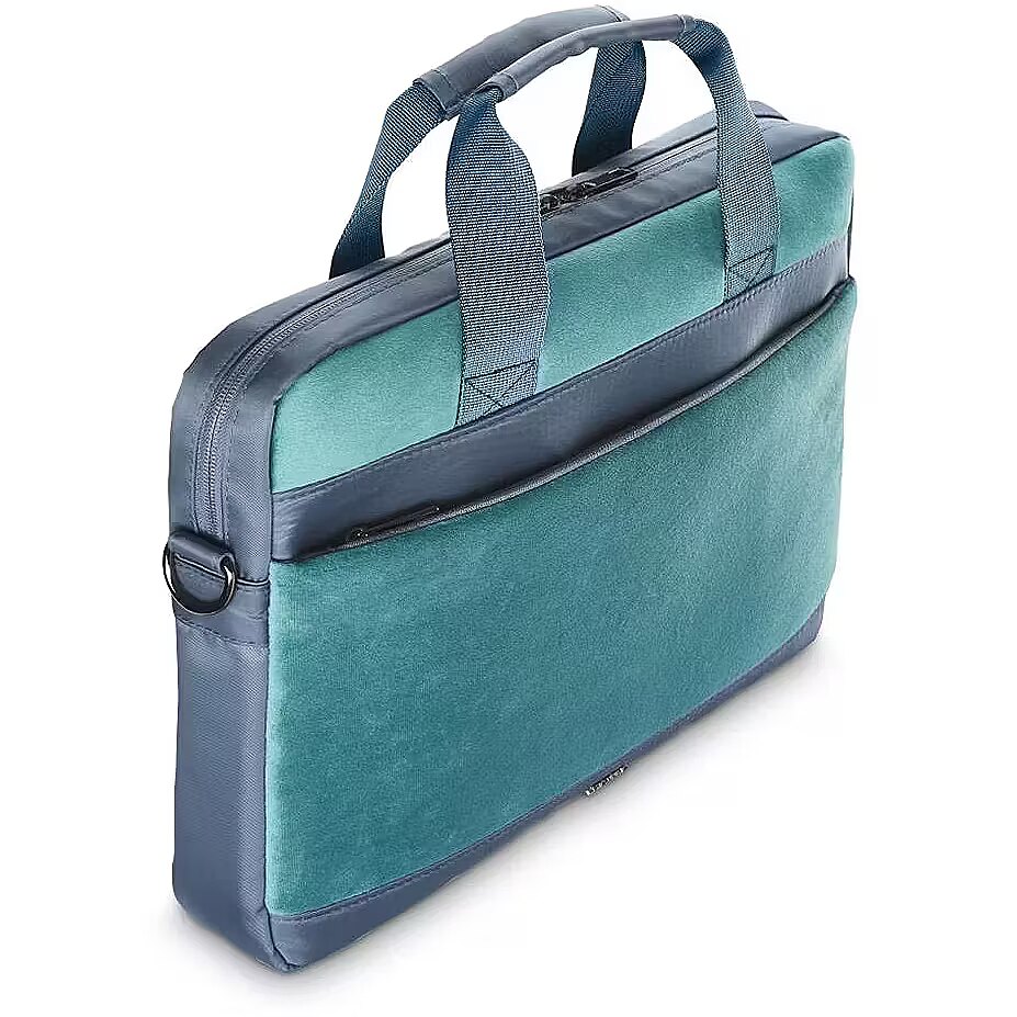 LongDesc - Stylish laptop bag to store your laptop and protect it against dirt and scratches in styleVelvet styleFully on trend and velvet-soft: fashionable velvet styleStylish material mixCosy and elegant: stylish material mix made of velvety, smooth fabricPadded laptop compartmentPadded laptop compartment for reliable protection during transportationTablet pocketAdditional tablet pocket for tablets up to 32,77 cm (12,9") in the main compartmentSpacious front pocketSpacious front pocket for additional accessories or personal itemsOrganizer structure in the front pocketOrganizer structure in the front pocket makes it easy to find accessories being storedDocument compartmentThe document compartment means that important documents, folders or your notebook are immediately within reachTrolley strapTrolley strap for convenient attachment to the handle of a trolleyPadded shoulder strapPadded shoulder strap for comfortable carrying: can be removed and its length adjustedHook and loop strapHook and loop strap for securing the laptopSheathed handlesConvenient handles with fabric sheathing for a pleasant carrying experience