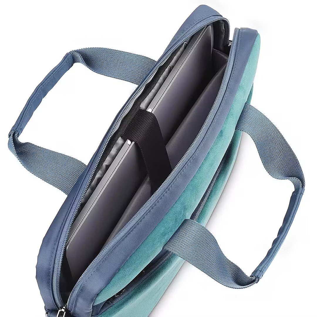 The bag's design combines velvety and smooth fabric, creating an elegant and comfortable look. Perfect protection for your laptop