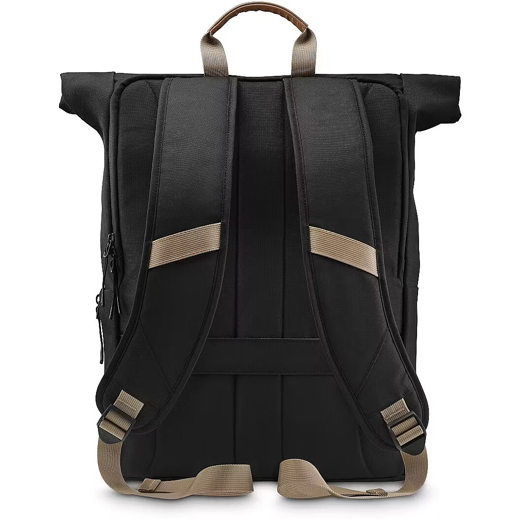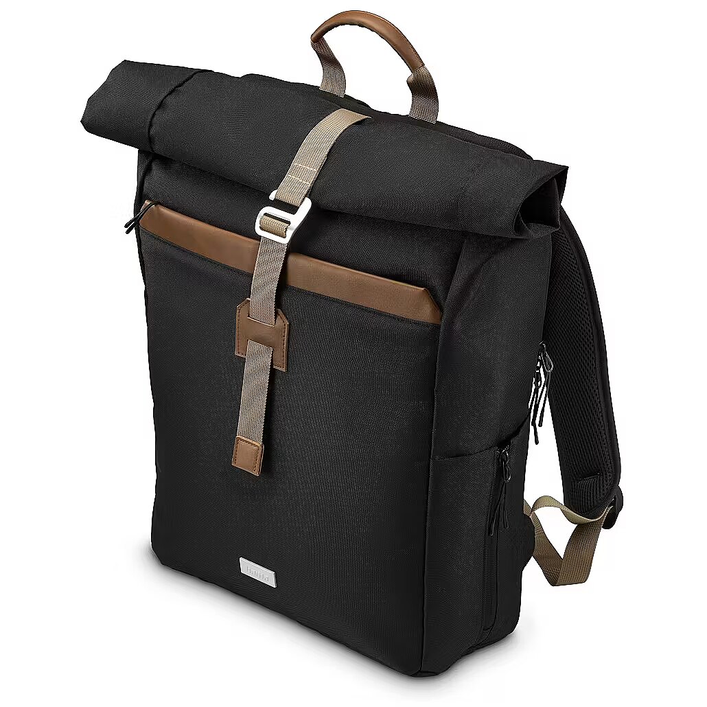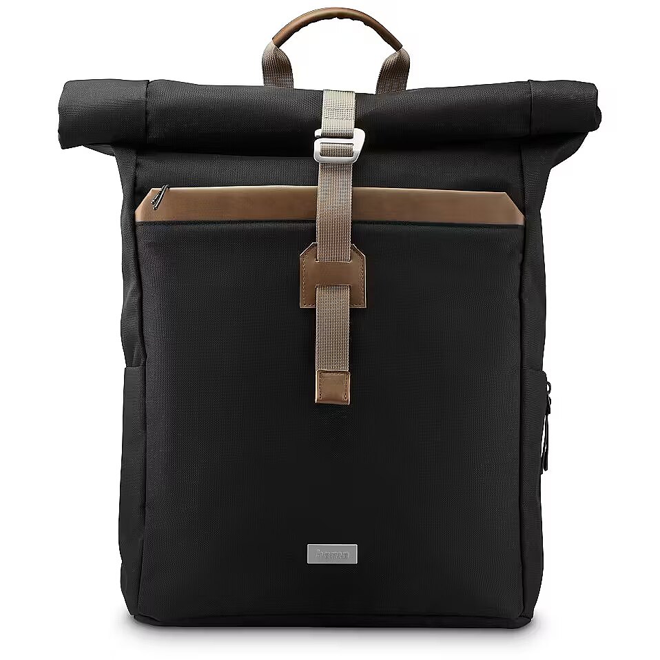 MediumDescription EN - The Hama Silvan laptop backpack is a spacious, sustainable and stylish companion for everyday life, university, work or travel. Made from 100% recycled polyester, it features a flexible roll-top closure that adapts to your load, offering a volume of 15 to 22 litres. A fully padded laptop compartment with a dedicated tablet sleeve, smart organiser layout and comfortable shoulder straps ensure convenience throughout the day. • Made from 100% recycled polyester (rPET)• Flexible roll-top design with 15–22 litre capacity• Fully padded laptop compartment for all-round protection• Dedicated tablet compartment for devices up to 12.9"• Spacious front pockets for everyday essentials• Padded, adjustable and breathable shoulder straps• Trolley strap for easy attachment to a suitcase