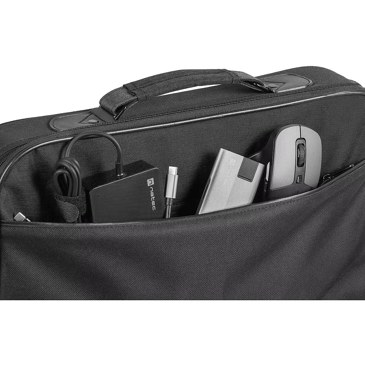 The bag is designed to easily accommodate not only a laptop up to 15.6" in size, but also a power supply and other accessories. Besides your mobile computer, you can also transport other important items thanks to the front zippered compartment, which is perfect for storing documents.
