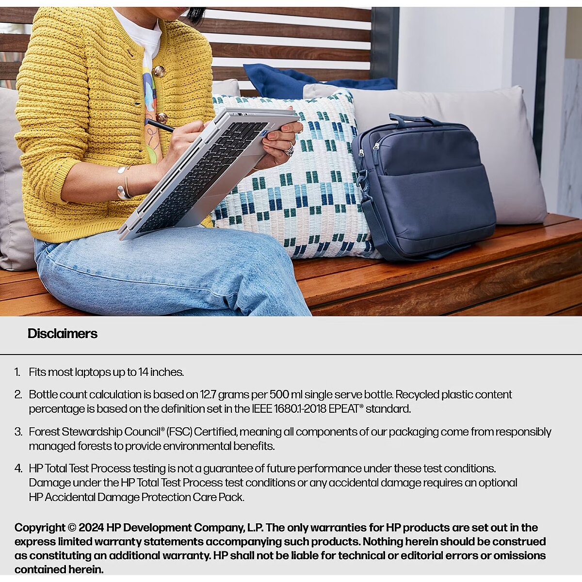 LongSummaryDescription - HP Everyday 14-inch Laptop Bag. Case type: Briefcase, Maximum screen size: 35.8 cm (14.1"), Shoulder strap. Weight: 440 g. Surface coloration: Monochromatic