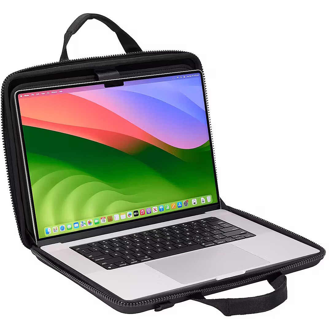 LongDesc - A molded attaché with rugged protection and in-case usability.A sleek, molded laptop sleeve for 16-inch MacBook Pro®, 15-inch MacBook Air®The rigid exterior and edge protection safeguard your device, while the clamshell design allows you to work directly out of the case.The Thule Gauntlet interior lining and trim materials are now 100% recycled.