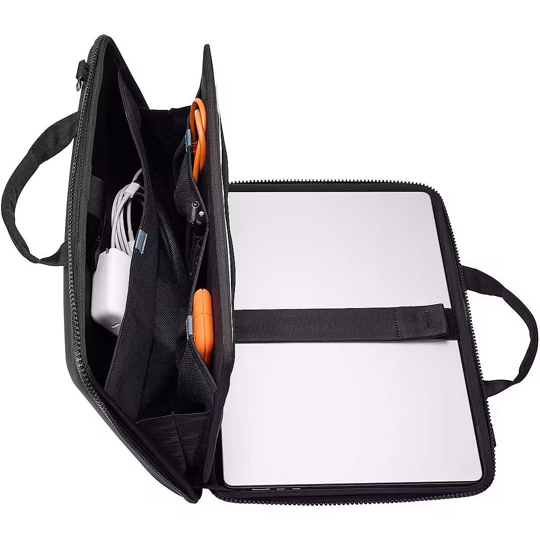 • Clamshell construction allows you to use the device without removing it from the bag.