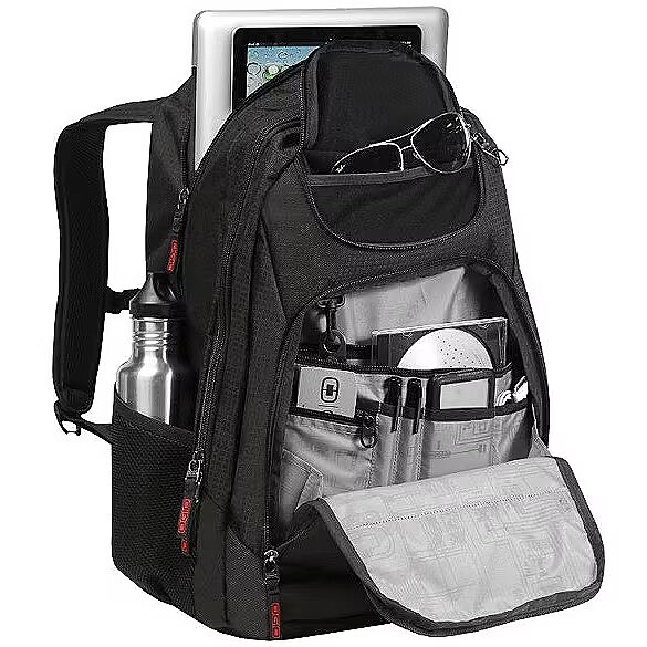 Description - Padded interior laptop compartment fits most 17 laptops Padded iPad/tablet/E-Reader sleeve Zippered fleece lined top valuables pocket Large main compartment for books, binders and files Padded back panel with air mesh for moisture wicking Dual side water bottle/accessory holders Organization panel with zippered stash pocket Front slip pocket Large grab handle Adjustable shoulder straps with sternum strap Photos of additional functionalities are for illustration only
