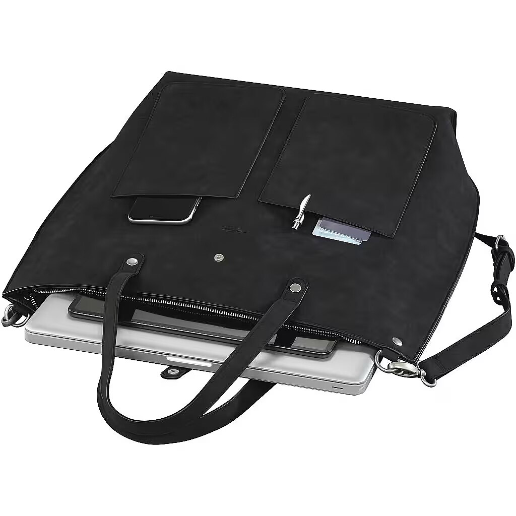 LongDesc - - Unique style – a statement in terms of business look: elegantly worked faux leather in a fine suede look with a light inside lining made from delicately shimmering fabric – an exquisite combination of materials for a classic, special style- Classic and relaxed – the shopping bag holds everything needed for everyday business life and anything else you can make good use of- Padded laptop compartment for reliable protection during transportation- Additional tablet pocket for tablets up to 28 cm (11") in the main compartment- Organizer structure inside the case makes it easy to find accessories being stored- Removable and length-adjustable shoulder strap for a pleasant carrying experience- Hook and loop strap for securing the laptop