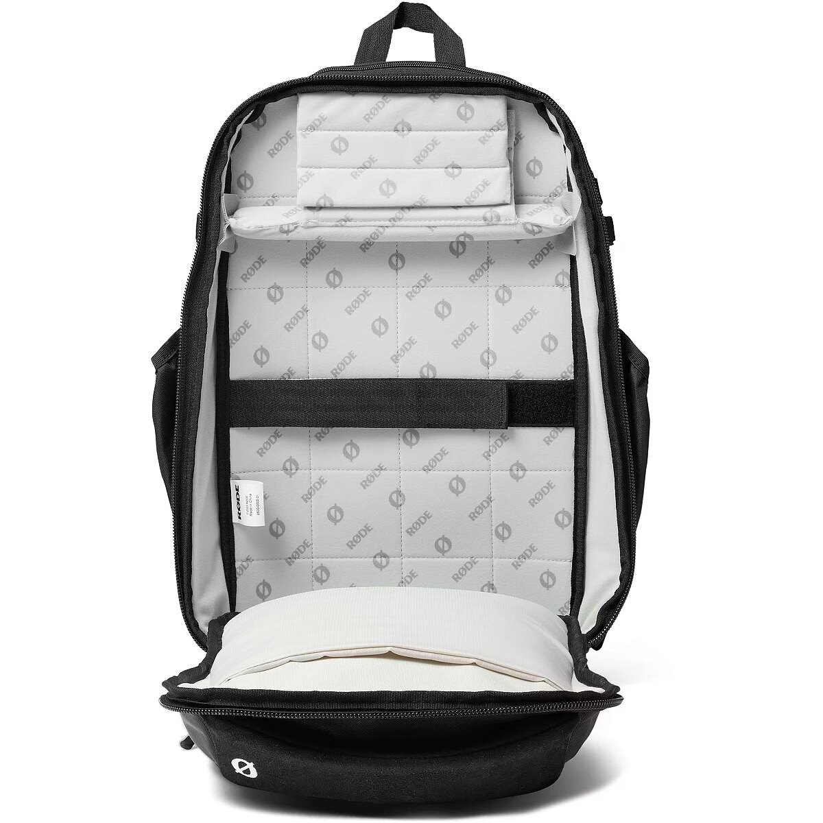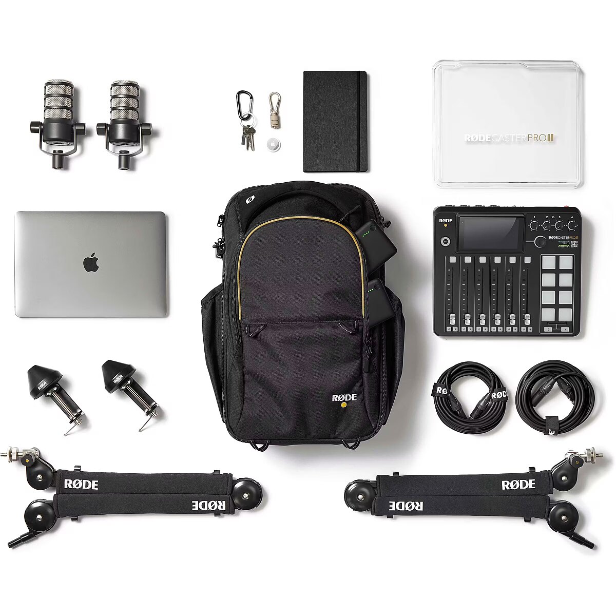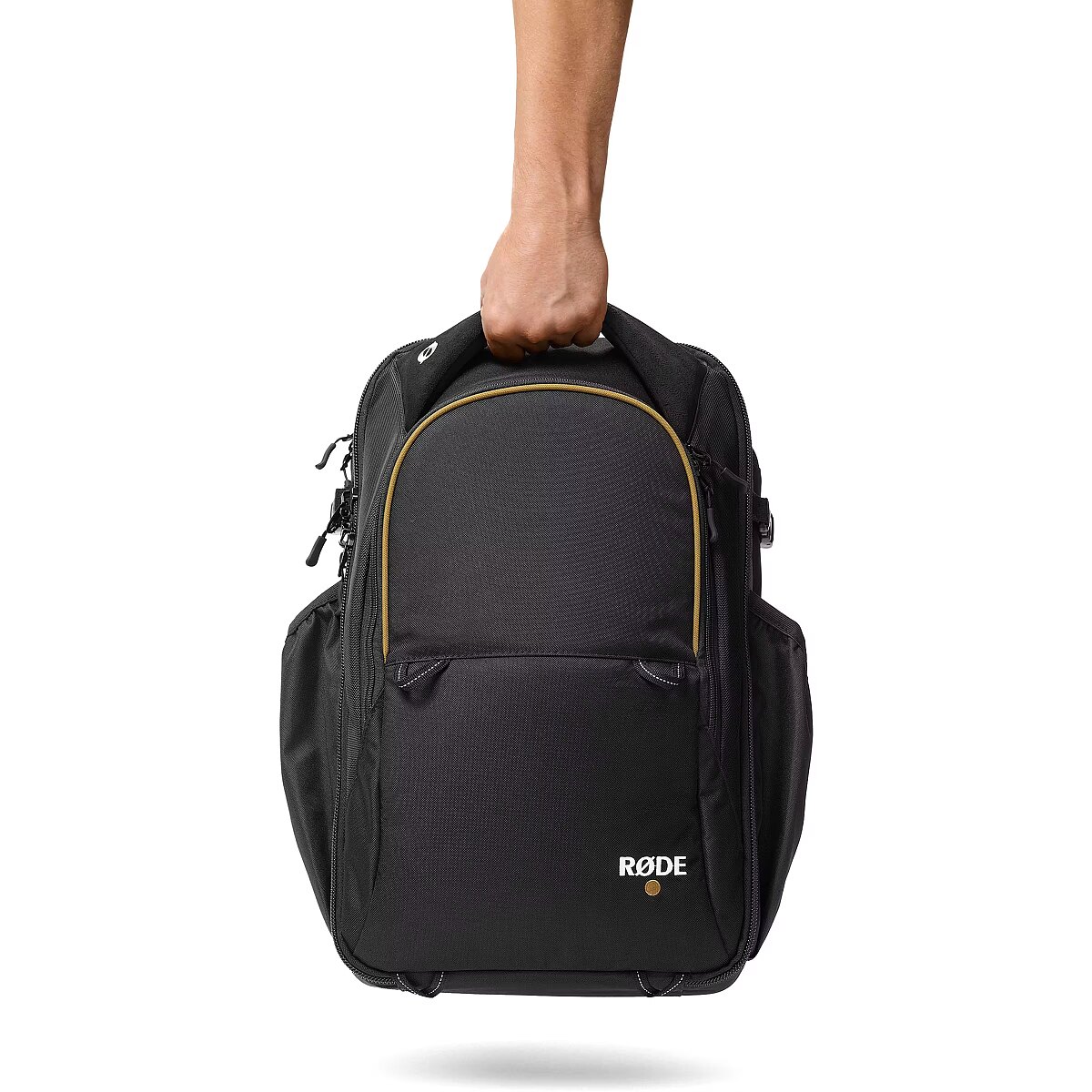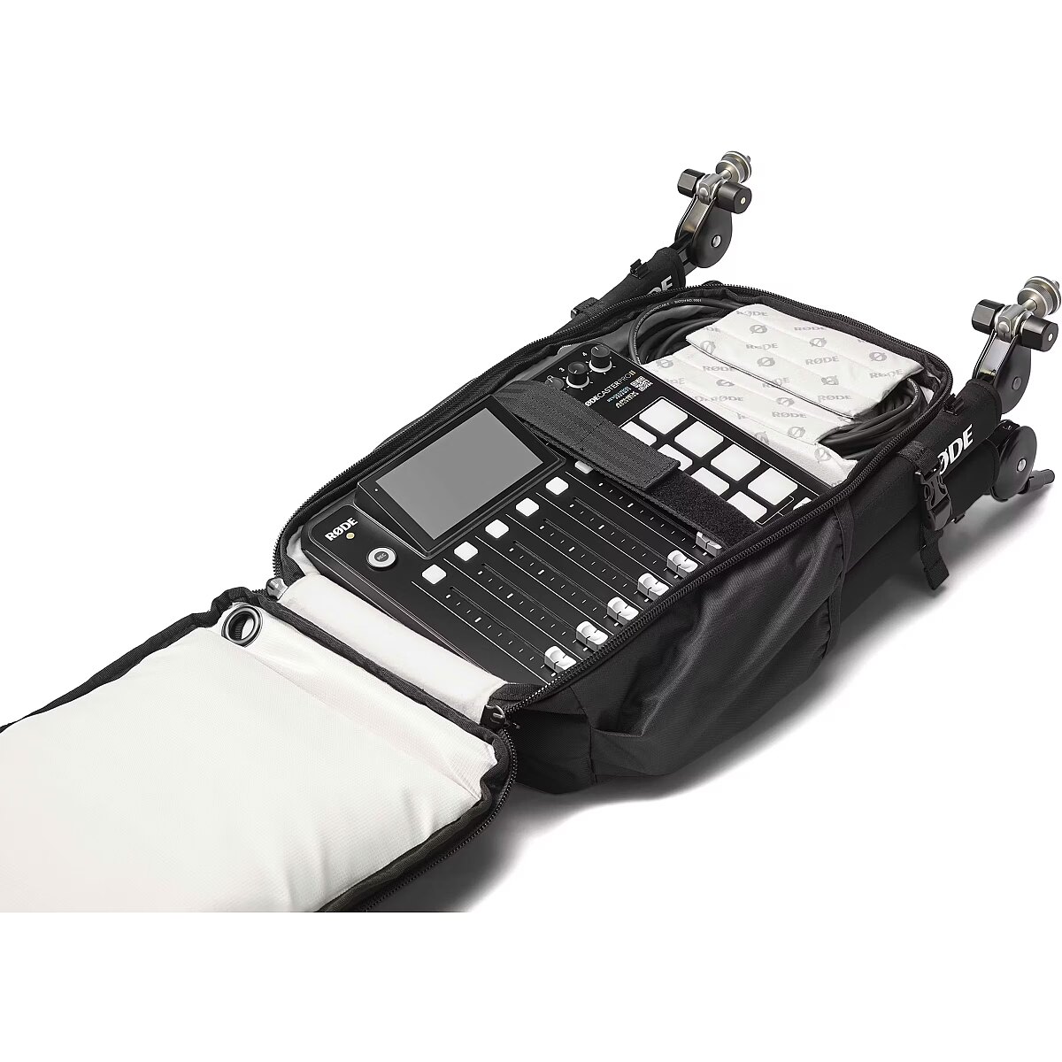 description_en - The RØDE Backpack is a custom-designed carry bag for the RØDECaster series, including the RØDECaster Pro or RØDECaster Pro II. Made from high-quality materials, including a soft, durable Alcantara® handle, ballistic nylon straps and water-resistant exterior, it is rugged and hard-wearing. It can accommodate a RØDECaster Pro or Pro II, plus microphones, studio arms and other accessories, as well as laptops up to 16 inches. Ergonomic adjustable shoulder straps with back and chest support ensure absolute comfort, with exterior pockets and compartments providing additional storage. Designed to securely transport the RØDECaster Pro or RØDECaster Pro II Safely stores microphones, mounts, cables and other accessories Dedicated padded laptop compartment that can fit laptops up to 16-inches Modular and padded equipment compartments for safely organising equipment Constructed from rugged, durable and luxurious materials, including a water-resistant exterior, ballistic-grade nylon and Alcantara® carry handle Lightweight design with ergonomic shoulder straps, back support and sternum strap Spacious 18L internal capacity with multiple compartments, pouches and attachment points Sleek and understated black design for a stylish and discreet aesthetic