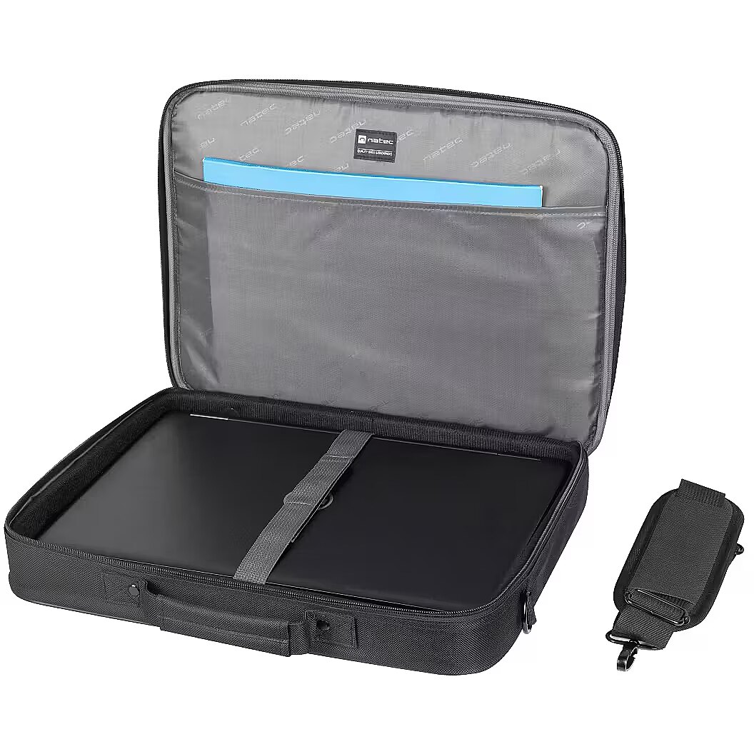 Description - Introducing the Natec Boxer Lite 15.6" - a bag that will help you carry not only a laptop with a maximum screen size of 15.6" but also accessories and documents. Safety? It will be taken care of by the Anti-Shock System - a rigid frame around the main compartment and the Air Cell System - a soft shock-absorbing insert. The whole is complemented by a reinforced and soft handle and a fully adjustable strap with metal handles. Keep what's most important with you at all times with the Natec Boxer Lite 15.6".