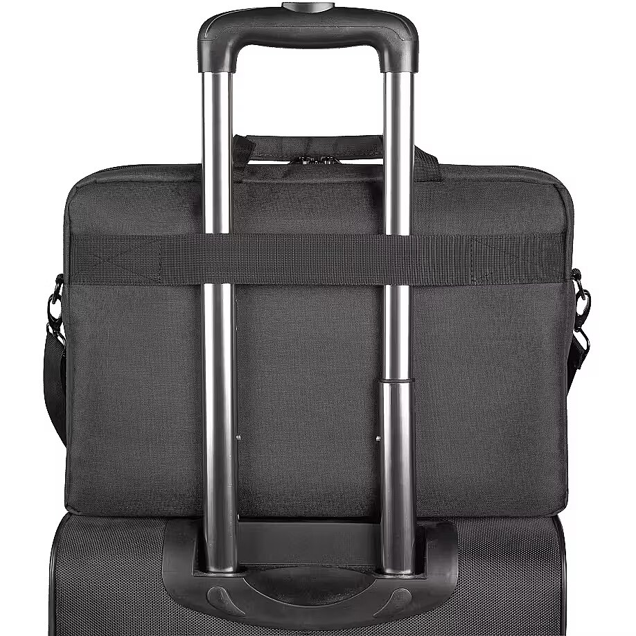 Other features - The bag is designed for laptops with a maximum diagonal of 15.6. Main compartment lined with shock-absorbing foam. Front pocket for office supplies and accessories. Reinforced, comfortable and soft carrying handle. Adjustable, detachable shoulder strap. Strong metal strap holders. Trolley system for attaching the bag to a travel suitcase.