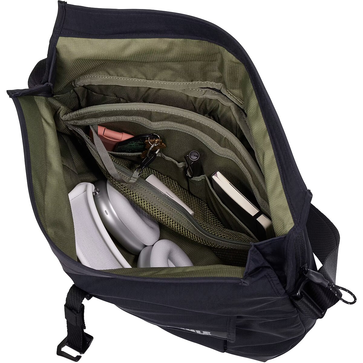 Technical details > Other features - The padded sleeve stores a 14" laptop or tablet, the main compartment can be accessed through two different openings for quick access to your items, and the rolltop closure protects your belongings from the elements; With a modern look that is distinctly Thule, the bags’ clean, modern styling and rich earth-tone colors and are ready for a business casual workday, or a meetup with friends after work; Carry in the front, back, or at your side for the look that suits you best