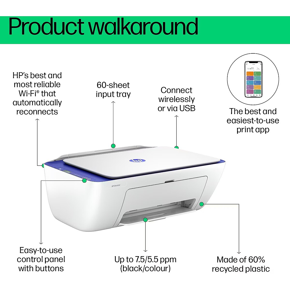 ShortSummaryDescription - HP DeskJet 2821e Wireless All-in-One Color Printer, Instant Ink; Copier, Scanner, Thermal inkjet, Colour printing, 4800 x 1200 DPI, A4, Direct printing, Blue