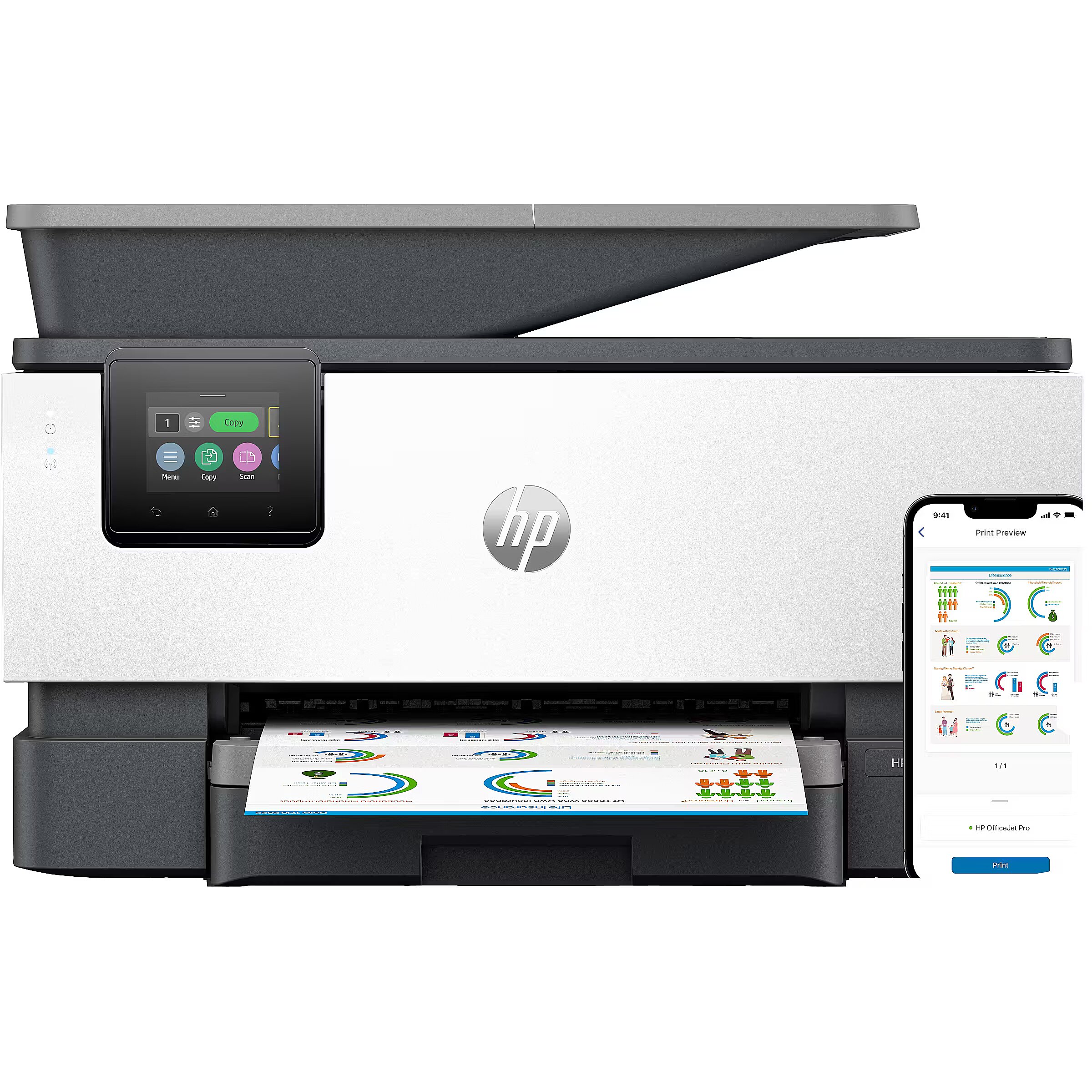 Features - Replacement cartridges - HP 937 Black Original Ink Cartridge (~1,250 pages) 4S6W5N; HP 937 Cyan Original Ink Cartridge (~800 pages) 4S6W2N; HP 937 Magenta Original Ink Cartridge (~800 pages) 4S6W3N; HP 937 Yellow Original Ink Cartridge (~800 pages) 4S6W4N. HP EvoMore planned to be available April 2024: HP 937e EvoMore Black Original Ink Cartridge (~2,500 pages) 4S6W9N; HP 937e EvoMore Cyan Original Ink Cartridge (~1,650 pages) 4S6W6N; HP 937e EvoMore Magenta Original Ink Cartridge (~1,650 pages) 4S6W7N; HP 937e EvoMore Yellow Original Ink Cartridge (~1,650 pages) 4S6W8N. Actual yield varies considerably based on content of printed pages and other factors. For details, see https://www.hp.com/go/learnaboutsupplies