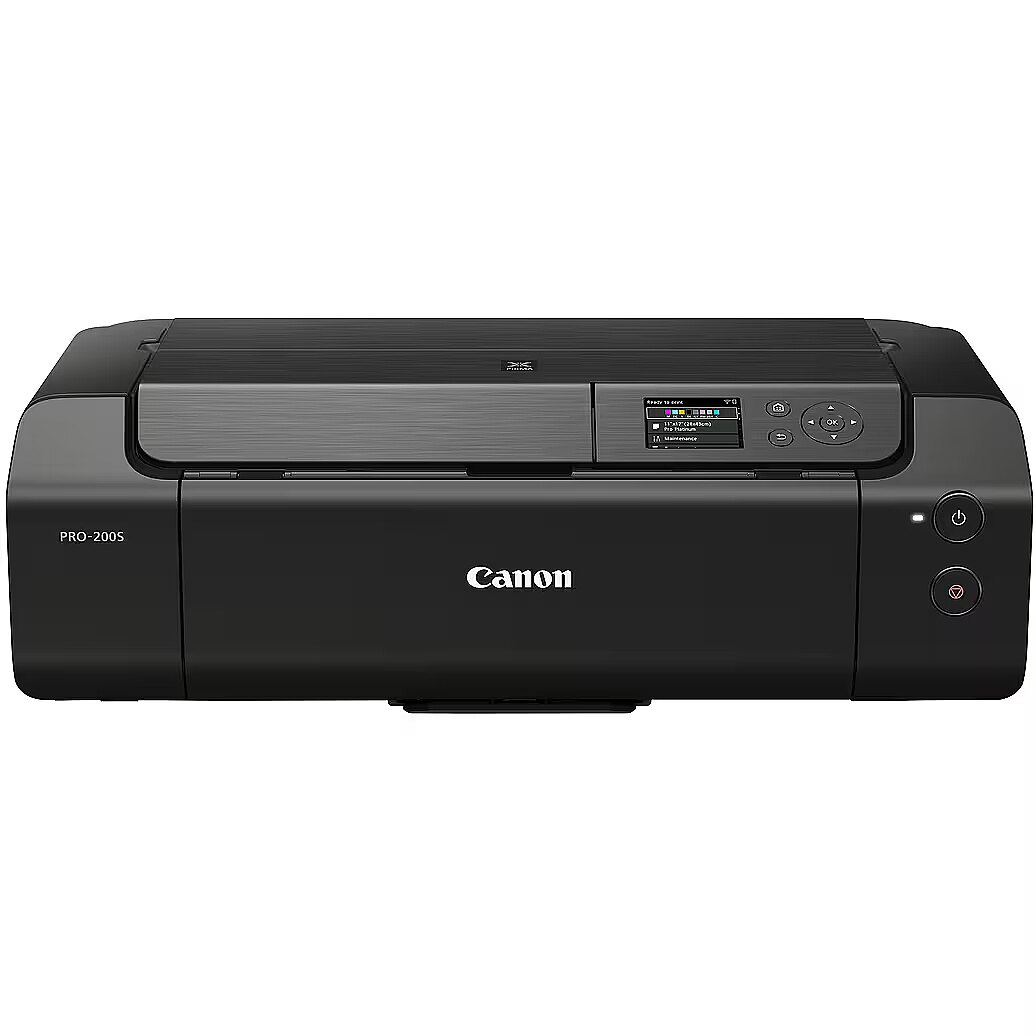 LongDesc - Canon imagePROGRAF PRO-300 A3 Plus Colour Photo Wireless PrinterThe imagePROGRAF PRO-300 inherits the same DNA as the earlier imagePROGRAF PRO series. Offering superior colour and monochrome printing quality and productivity, this Canon A3 printer has the same print workflows as its larger imagePROGRAF PRO models. With a smaller form factor than the PIXMA PRO-10S it replaces, the A3 Inkjet printer is a distinct step-up in quality, giving you the easiest route to gallery quality results thanks to the Canon Professional Print & Layout software and plugin. This compact A3 printer also works seamlessly with EOS camera technology to unlock unique features such as HDR and DPRAW for breath-taking fine art photography prints to display and cherish forever.Benefits- Smaller than the PIXMA PRO-10S, this stylish and compact A3 printer is at the heart of your creative output, connecting easily with PC or Mac using Wi-Fi or ethernet- Achieve borderless printing on glossy or fine art papers and print panoramic images to custom lengths up to 990.6 mm- Quickly navigate the printer’s menus and functions thanks to a clear bright display that allows instant monitoring of printer functions, ink levels and paper settings- Print with confidence thanks to a built-in nozzle recovery function that helps to reduce clogging, while built-in skew correction offers smooth media feeding- Canon’s L-COA PRO processor easily handles large image data and calculates precise ink delivery at super-fast speeds to produce high quality prints without compromise- Achieve professional results on a wide variety of media up to A3+ in super-quick time thanks to zero ink switching- Using 10 LUCIA PRO pigment inks, the printer delivers outstanding colour with a dedicated chroma optimiser ink to reduce bronzing and deliver stunning tonal superiority- The imagePROGRAF PRO-300’s Matte Black ink enables greater expression of monochrome images with deeper and more vivid blacks on fine art paper- Be confident in your printing prowess thanks to the Canon Professional Print & Layout software and plugin, which takes colour matching to new levels of excellence