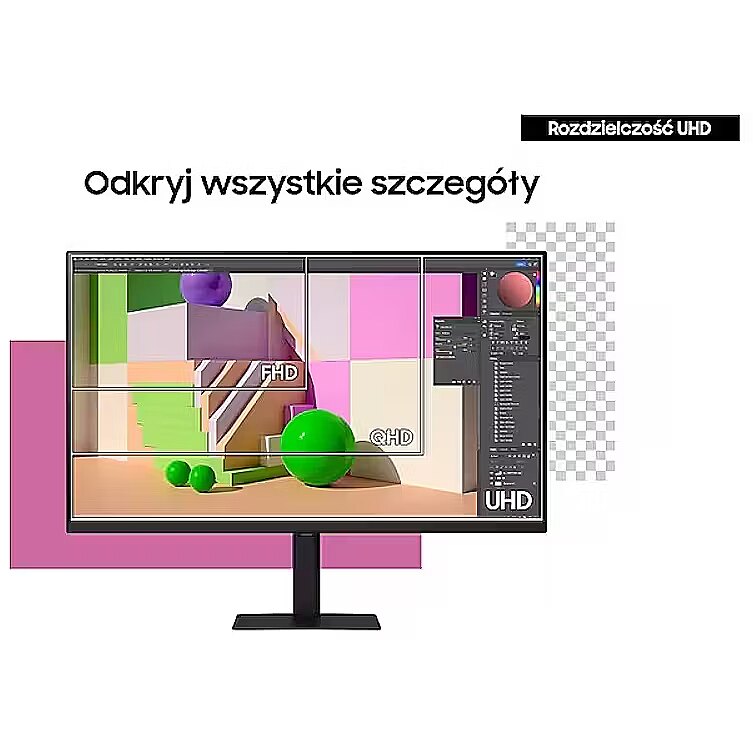 Description - Rozdzielczość UHD Wizualne mistrzostwo, którego wymagają profesjonaliści. Rozdzielczość UHD (3840x2160) to jeszcze więcej detali dzięki większemu zagęszczeniu pikseli na matrycy. Teraz możesz zanurzyć się w większej szczegółowości obrazu i większej przestrzeni roboczej ekranu, aby realizować swoje najbardziej skomplikowane pomysły. 1,07 miliarda kolorów dzięki HDR10 HDR10 zapewnia realistyczne odwzorowanie barw, zarówno ciemniejszych jak i jaśniejszych odcieni. Widząc szerszą gamę kolorów oraz każdy niuans, odkryjesz ponownie satysfakcję z tworzenia kreatywnych projektów. Wiele portów Dzięki portom HDMI i DP podłączanie urządzeń peryferyjnych jest tak proste, jak to tylko możliwe. Ta niesamowita wygoda nie tylko upraszcza konfigurację, ale także zwiększa produktywność. Postawka Easy Setup Stand Podstawa Easy Setup Stand tworzy idealną przestrzeń roboczą bez użycia narzędzi i śrub. Gdy nadejdzie czas na zmianę konfiguracji, wystarczy nacisnąć przycisk i cieszyć się ulubionym ustawieniem.