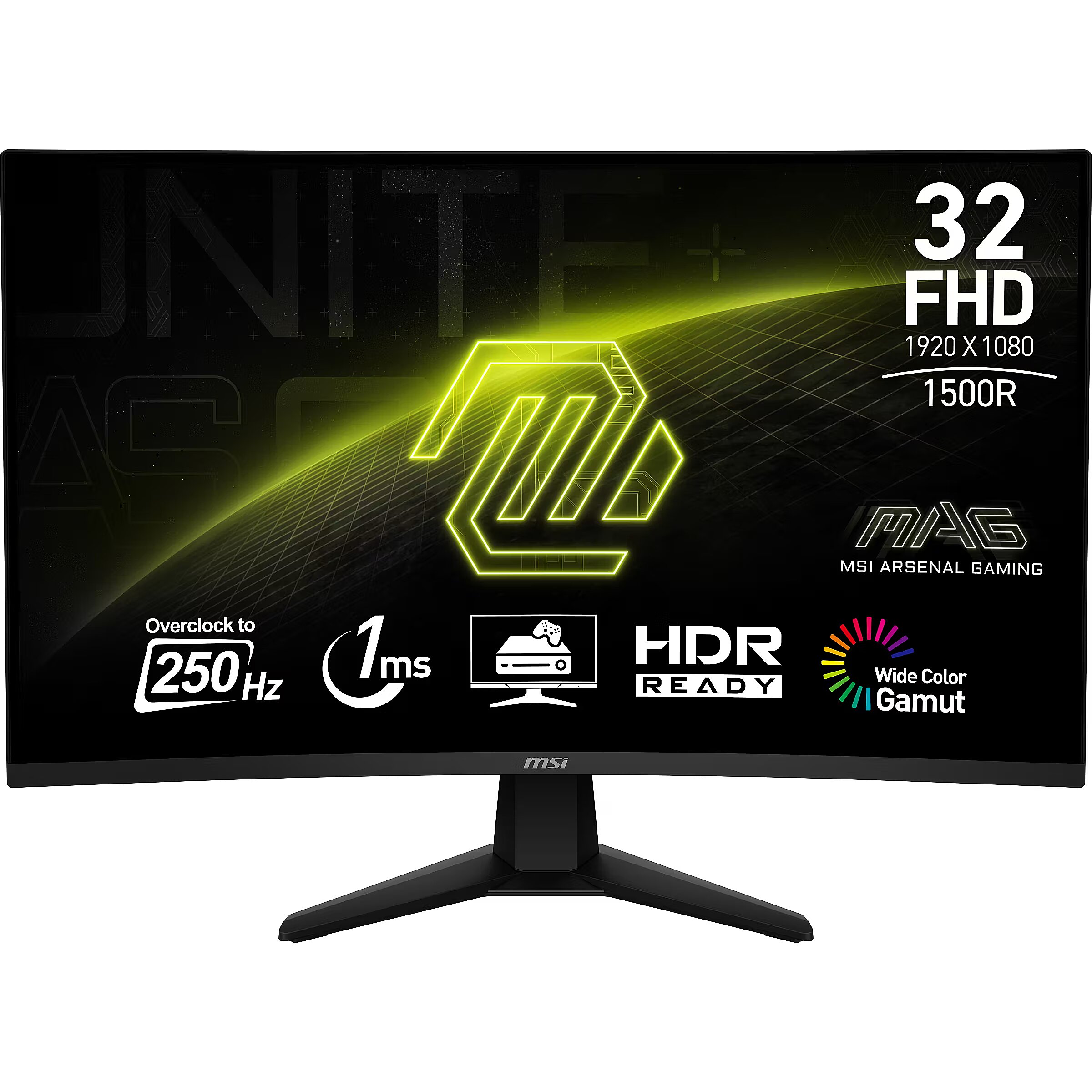 LongDesc - Visualize your victory with the MSI MAG 32C6X gaming monitor. Equipped with a 1920x1080, 250Hz(OC) Refresh rate, 1ms MPRT response time, MAG 32C6X will give you the competitive edge you need to take down your opponents. Built with Adaptive-sync technology, the MAG 32C6X can match the display's refresh rate with your GPU for ultra-smooth gameplay. Make sure you can hit your mark with all the latest technologies built-in the MSI Gaming monitors for competitive play.The MSI ARSENAL GAMING (MAG) series is engineered to give gamers the edge they need to dominate on the virtual battlefield. Inspired by the rugged durability and unwavering reliability of military-grade equipment, the MAG series is built to provide an unwavering defense in every gaming scenario.However, MAG isn't just about performance; it's a design language that conveys ruggedness and toughness, embodying the very essence of the MAG style. For gamers who are determined to dominate their digital battlegrounds, the MAG series is here to stand with you, establishing the ultimate defense.