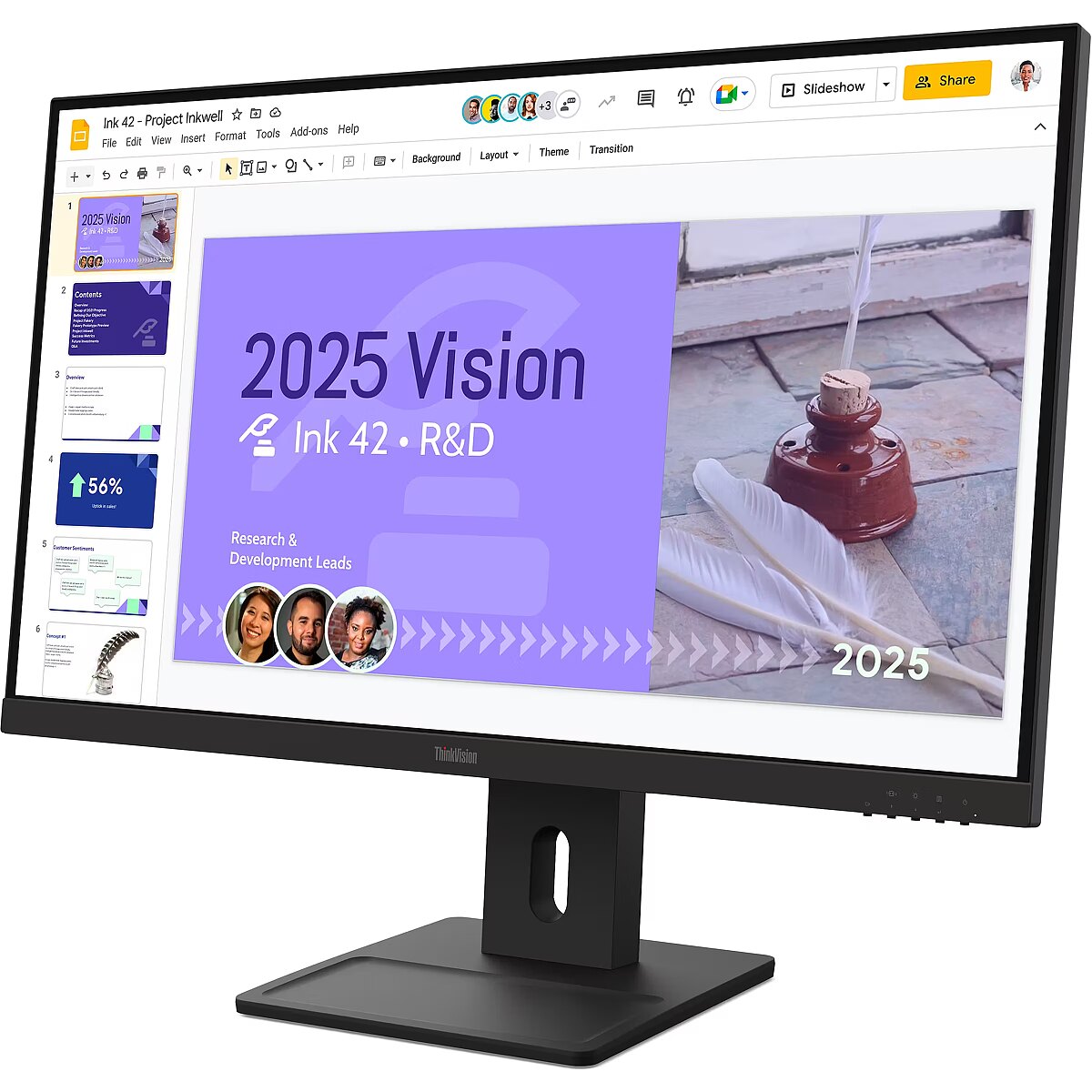 Tämä Lenovo ThinkVision E27Q-40, 27" näyttö, jossa on WQHD 2560x1440 resoluutio, takaa selkeän ja mukavan kuvan työskentelyyn, opiskeluun ja päivittäisiin tehtäviin. Se yhdistää kätevän muodon, modernin muotoilun ja optimaaliset visuaaliset ominaisuudet, tehden jokapäiväisestä käytöstä tuottavampaa ja nautittavampaa. 6ms vasteaika takaa nopean pikselinsiirtymän sävyjen välillä, vähentäen mahdollisuutta liikkeen jälkiin ja sumennukseen. Tällainen nopeus parantaa dynaamisten kohtausten terävyyttä ja vähentää visuaalisia artefakteja korkeissa ruudunpäivitysnopeuden muutoksissa, mikä on olennaista interaktiivisille sovelluksille ja tarkan liikkeen esittämiselle. IPS -teknologia varmistaa tarkemman värien esityksen ja vakaan kuvan katsottaessa sivulta. TN- ja VA-teknologiaan verrattuna se muuttaa kirkkautta ja kontrastia vähemmän katselukulman mukaan, tehden näytetyistä tiedoista visuaalisesti luotettavampia ja teknisesti tarkempia. Tämä näyttö, jonka virkistystaajuus on 100 Hz, mahdollistaa useammin uusiutuvat kehykset, mikä parantaa nopean liikkeen näkyvyyttä. Tämä tila vähentää kuvan viivettä ja minimoi pikselivirheet, jotka tapahtuvat nopean liikkeen aikana. Se sopii tehtäviin, jotka vaativat tarkkaa visuaalista tietoa korotetulla virkistystaajuudella. Flicker-Free vähentää taajuusvärinää, joka on yleistä joissakin kirkkauden säätömenetelmissä. Tämä vähentää visuaalista rasitusta ja takaa silmille miellyttävän, tasaisen kuvan. Teknologia on erityisen hyödyllinen työskenneltäessä pimeämissä huoneissa ja pitkäkestoisissa katselusessioissa. Pivot-tila mahdollistaa näytön fyysisen kääntämisen 90°, laajentaen työympäristön toiminnallisuutta. Pystyformaatti helpottaa dokumenttien vertailua, taulukoiden käsittelyä ja verkkosivujen tarkastelua, varmistaen tehokkaamman tiedon asettelun ja tarkemman visuaalisen havainnoinnin. Swivel -mekanismi mahdollistaa näytön vaakakulman muuttamisen liikuttamatta koko rakennetta. Tämä helpottaa työtilan säätöä, parantaa näkyvyyttä eri kohdista ja auttaa säätämään monitoria erilaisia käyttötapauksia varten, mukaan lukien asetukset useille käyttäjille tai useille näytöille. Tilt-toiminto varmistaa paneelin pystysuuntaisen kallistuksen joustavan säätämisen, mahdollistaen näytön tarkan sovittamisen työasentoon. Tämä vähentää epämukavuuden riskiä pitkäaikaisessa käytössä, ylläpitää optimaalista katselukulmaa ja auttaa välttämään kuvan vääristymistä erilaisissa valaistusolosuhteissa. VESA-seinäteline mahdollistaa monitorin asentamisen seinälle noudattaen yhtenäistä teollisuusstandardia. Se helpottaa telineen valintaa, lisää työtilan järjestelyn joustavuutta ja mahdollistaa korkeuden ja asennuskulman säätämisen riippumatta pöydästä tai jalustasta.