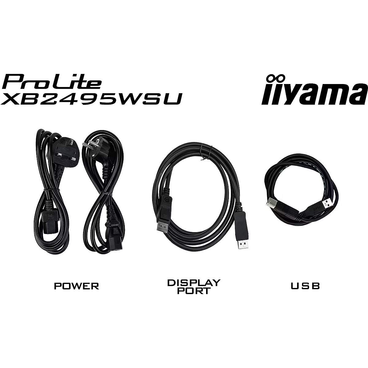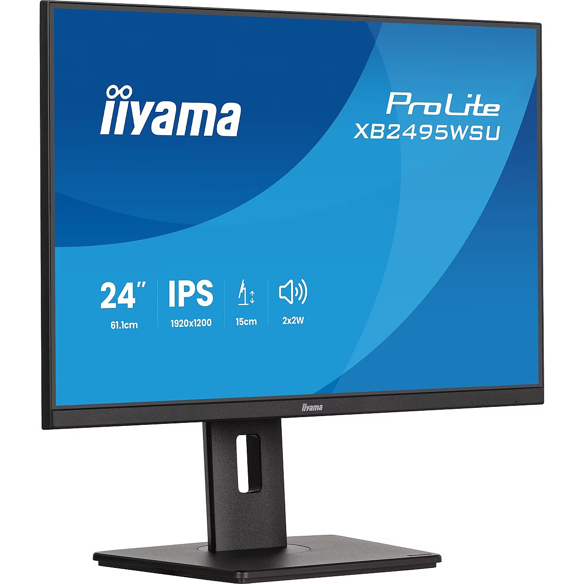 LongSummaryDescription - iiyama ProLite XB2495WSU-B1. Display diagonal: 61.2 cm (24.1"), Display resolution: 1920 x 1200 pixels, HD type: Full HD, Display technology: LCD, Display surface: Matt, Response time: 4 ms, Native aspect ratio: 16:10, Viewing angle, horizontal: 178°, Viewing angle, vertical: 178°. Built-in speaker(s). Built-in USB hub, USB hub version: 3.2 Gen 1 (3.1 Gen 1). VESA mounting, Height adjustment. Product colour: Black