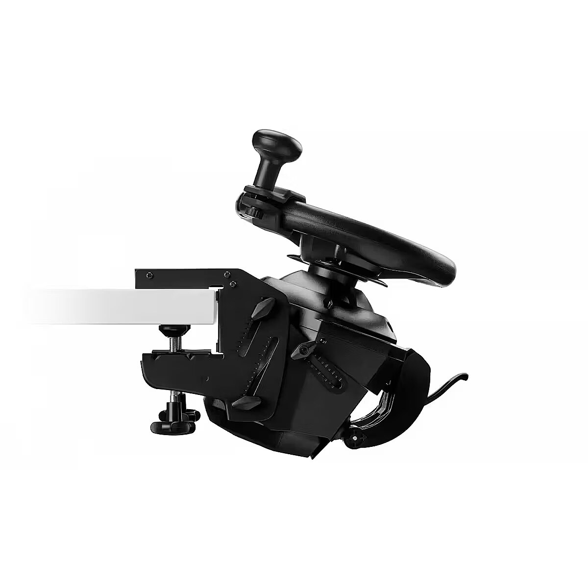SimTask Steering Kit to układ mocowania do biurek o grubości blatu od 15 mm do 50 mm, który umożliwia łatwe regulowanie nachylenia i wysokości kierownicy T128 bez jej demontowania czy używania narzędzi. Dzięki niemu możesz szybko przestawiać się z jednego położenia w drugie - od wyścigów samochodowych przez symulatory rolnicze po kierowanie ciężarówką.