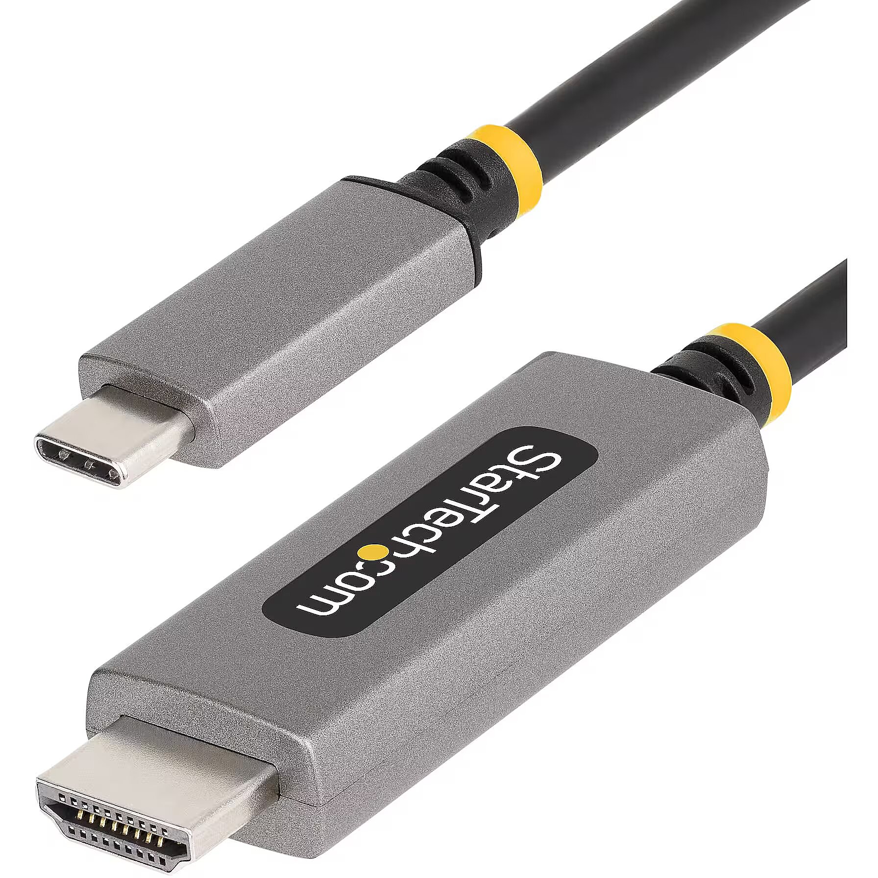 LongDesc - Connect a DP Alt Mode enabled USB-C source to an HDMI monitor, located up to 10ft (3m) away, with support for HDR video and resolutions up to 8K 60HzConnect an 8K 60Hz or a 4K 144Hz HDMI display to a DP Alt Mode-enabled USB Type-C source, at a distance of up to 9.8ft (3m), using this USB-C to HDMI Adapter Cable.High-Resolution HDR VideoThis USB-C to HDMI Cable enables resolutions of up to 8K 60Hz and is HDMI 2.1 FRL complaint. It supports HDR10, HDCP 1.x/2.2/2.3, and DSC 1.1/1.2a. The adapter cable supports 7.1 channel audio with Dolby Atmos and DTS:X.Hardware PlatformSingle MonitorDisplayPort Alt ModeIntel 11 th Gen & Later Processors8K 60Hz or 4K 144Hz*DisplayPort 1.4Nvidia RTX3000 and AMD RX6000 or later8K 60Hz or 4K 144HzDisplayPort 1.4Intel 10th Gen & Earlier4K 60HzDisplayPort 1.4Apple M1/M2 + Pro & Max4K 60Hz**DisplayPort 1.4*DSC support required to reach maximum resolution capabilities on Intel 11th Gen or later**Apple MacBook's with M1/M2 silicon can only support up to 4K 60Hz through HDMIUniversal CompatibilityThe USB-C to HDMI Converter Cable is compatible with laptops and devices from various brands such as Dell, HP, Lenovo, Microsoft, and more. It works with all hardware platforms and any operating system. The USB Type-C to HDMI Cable requires no drivers or software and works with USB-C DP Alt Mode, USB4, Thunderbolt 3, and Thunderbolt 4 laptops and devices.Note: Apple M1/M2 devices, including MacBook Pro, can only support up to 4K 60Hz over USB-C DP Alt Mode and cannot achieve 8K 60Hz.Thoughtfully DesignedCombining a video adapter and cable minimizes potential points of failure and signal loss. Adaptive receiver equalization optimizes the input signal and amplifies the output signal to ensure compatibility with high-resolution monitors. The cable is equipped with cage shielding to prevent Electromagnetic Interference (EMI).The StarTech.com Advantage