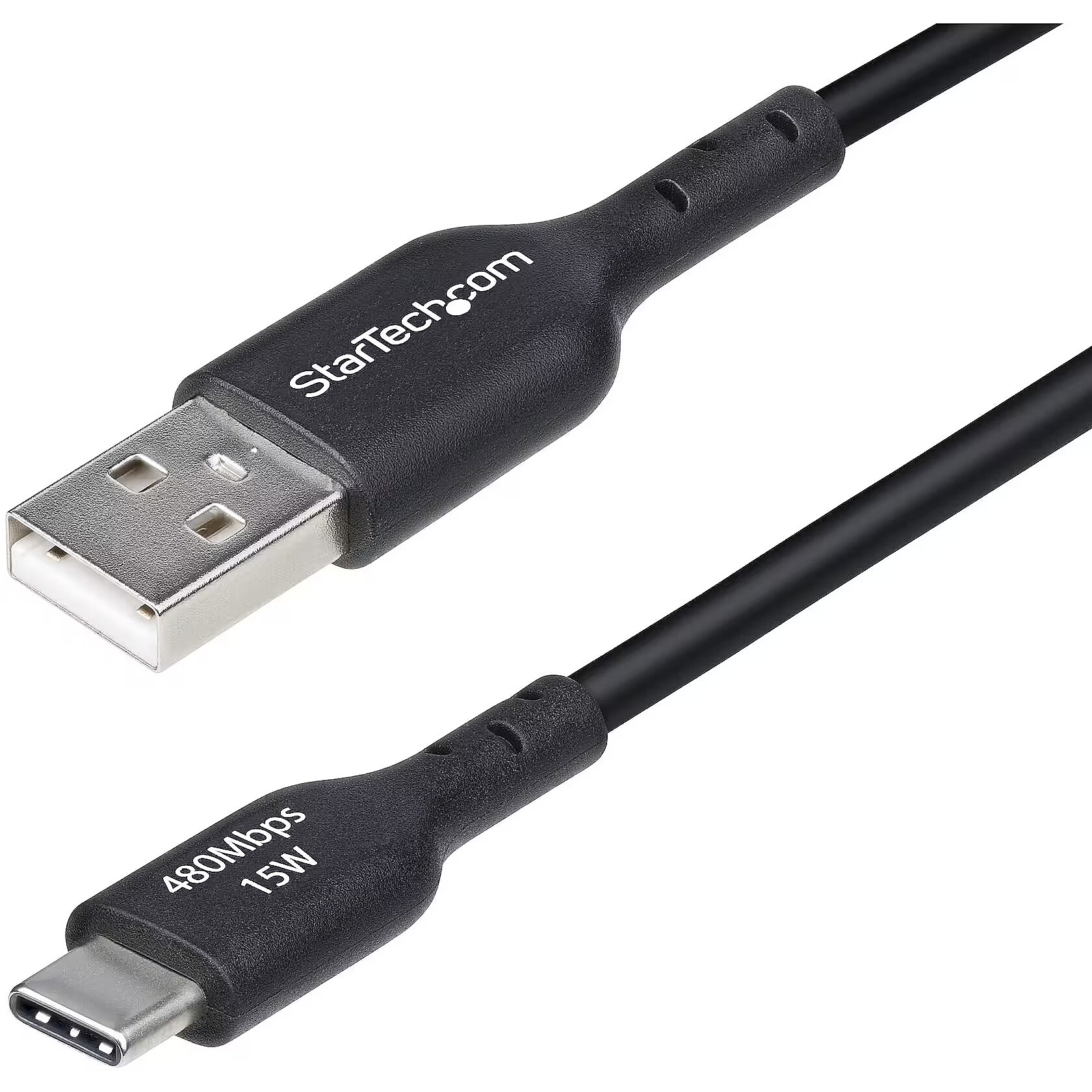 Title - StarTech.com 3ft (1m) USB-A to USB-C Charging Cable, Charge & Sync, 3A, USB 2.0, TPE Jacket - Black USB Charging Cord