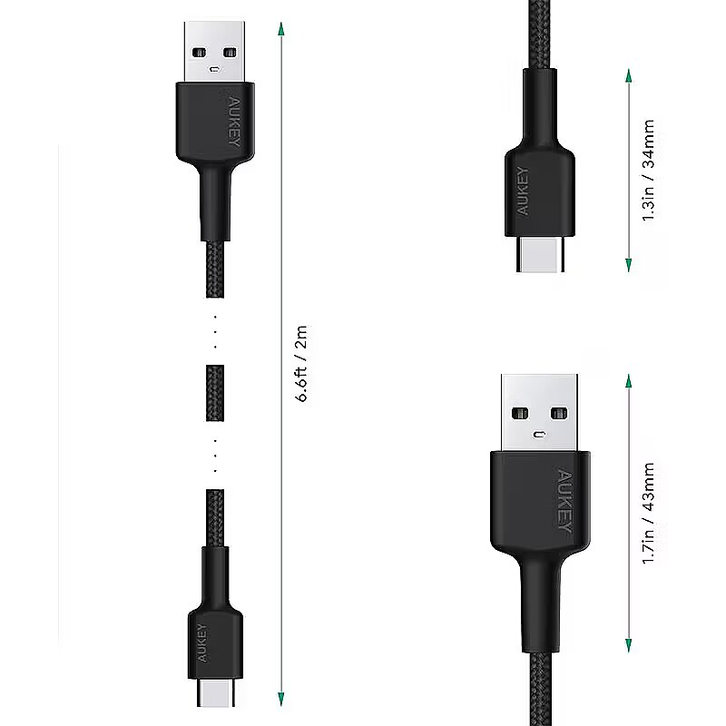 Description - AUKEY CB-CA2 OEM szybki kabel Quick Charge USB C-USB A | 2m Materiał: plecionka nylonowa Bardzo szybkie kable do synchronizacji lub ładowania Kable spełniają wymagania Power Delivery, Quick Charge 4.0 / 3.0 / 2.0 / 1.0, AiPower, Fast Charge itp. Transfer danych do 5 Gbps Natężenie: do 3A Napięcie: do 20V Moc: do 60W Pozłacane złącza Wielowarstwowe ekranowanie Wersja OEM: W foliowym blistrze, bez tekturowego pudełka W zestawie: Kabel CB-CA2 Black oraz rzep/opaska