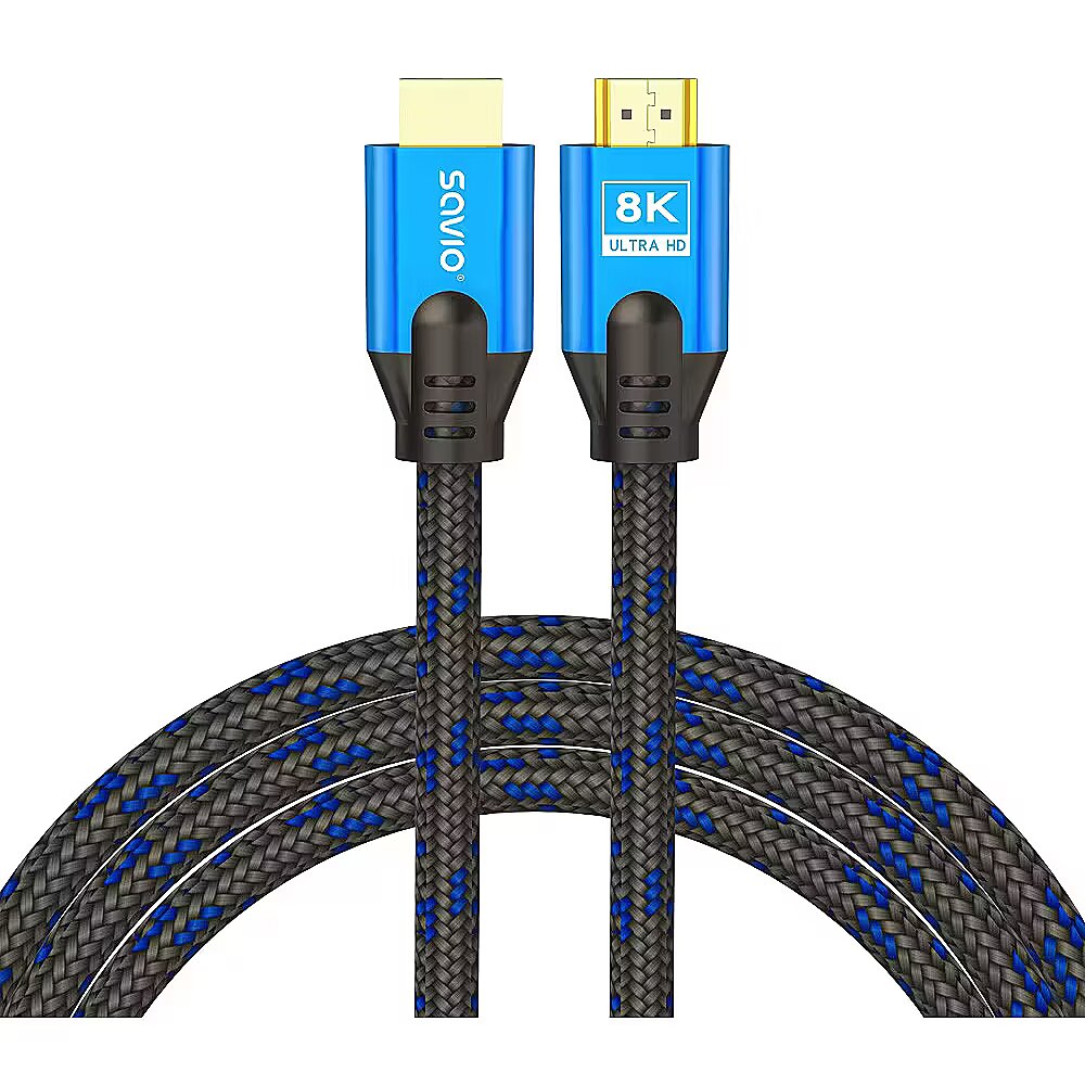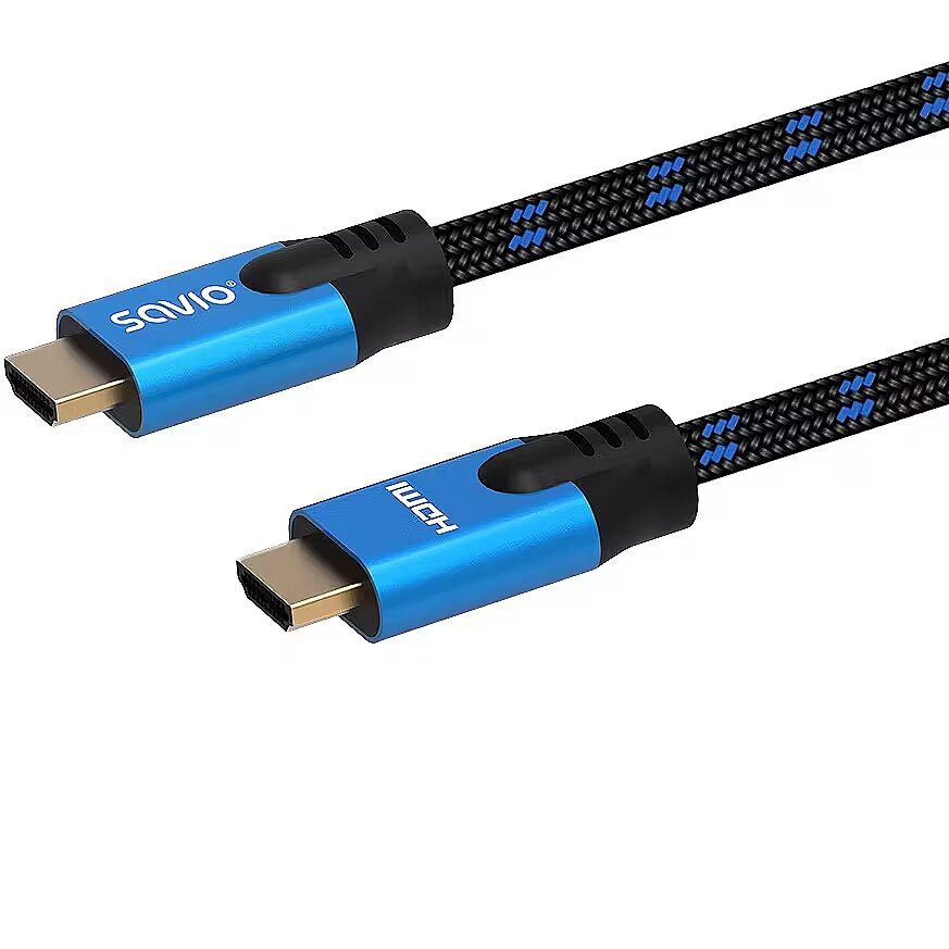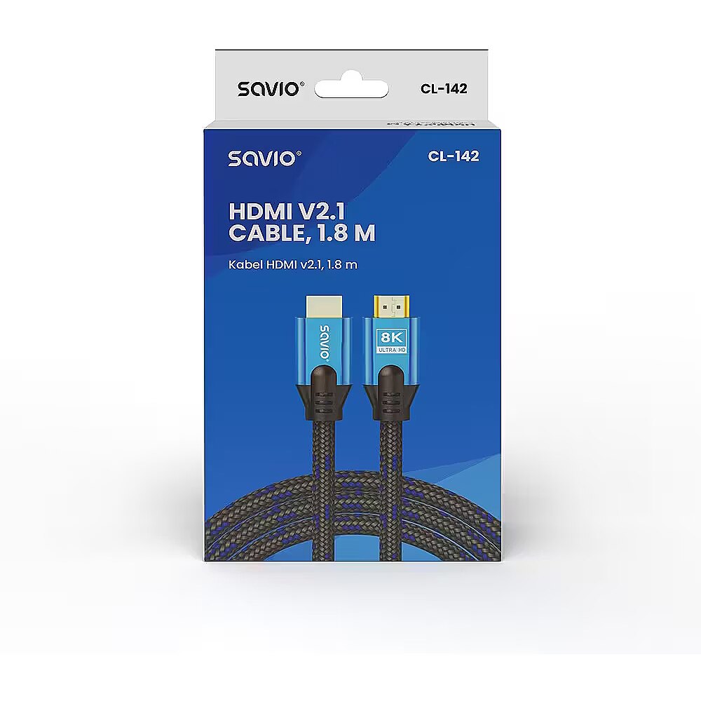 Description - SAVIO HDMI (M)v2.1, 1,8m, 8K, copper, blue-black, gold-plated, ethernet / 3D CL-142 Image transmission from a computer, console, laptop, tuner, DVBT on TV