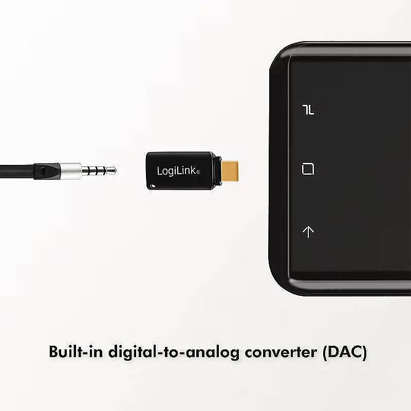 Other features - USB-C audio adapter Built-in digital-to-analog converter (DAC) outputs Hi-Fi quality music Input: USB-C, male Output: 3.5 mm TRRS jack Supports any headphones with a built-in microphone