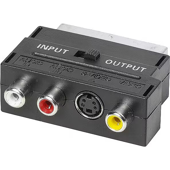 description_short_en - SCART – 3 × RCA adapter Connects S-Video or RCA to SCART socket Signal direction can be switched