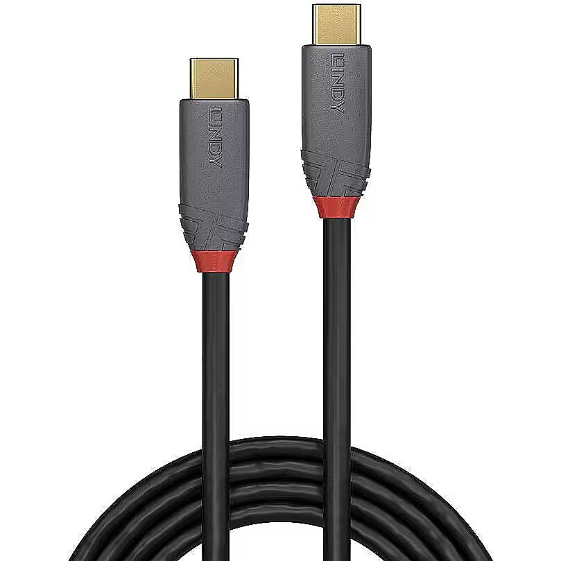 LongDesc - The Anthra Line USB 3.2 Type C to C, 5A, cables from Lindy's Cable Lines concept are the professional choice for high performance connections in commercial AV and IT installations.Anthra Line USB 3.2 cables are premium connections that feature triple shielded construction with tinned copper conductors for performance and corrosion resistance. High quality 24K gold plated contacts and connectors maintain optimal signal integrity and maximum reliability.USB bandwidths up to 20Gbps are supported for rapid transfer of large data volumes. These cables are E-marked to provide 100W (5A) of power to devices using the most efficient power delivery profiles.The cable supports DisplayPort Alternate mode at max. 4K 60Hz.USB Type C features a new reversible connector, so no matter which orientation the cable is inserted, a connection will always be found. This connector allows a fully bi-directional cable with automatic host and device negotiation.Anthra Line USB 3.2 Type C to C, 5A cables are available in the following lengths: 0.5m, 1m and 1.5m.Information about USB generations We have adapted the naming of our USB 3 cables to follow the updated USB specification. USB 3.0 and USB 3.1 Gen 1 have been renamed to USB 3.2 Gen 1, supporting data transfer up to 5Gbps USB 3.1 and USB 3.1 Gen 2 are now called USB 3.2 Gen 2, supporting data transfer rates up to 10 Gbps USB 3.2 Gen 2x2 is a new standard, supporting data transfer rates up to 20 GbpsUSB 3.0, USB 3.1 and USB 3.2 PCs, cables and devices are all compatible with each other, when using either a USB Type A or USB Type C host interface.