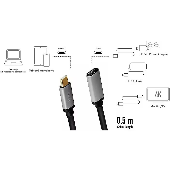 name - USB-C M/F cable, 4K/60Hz , alu, 0.5m