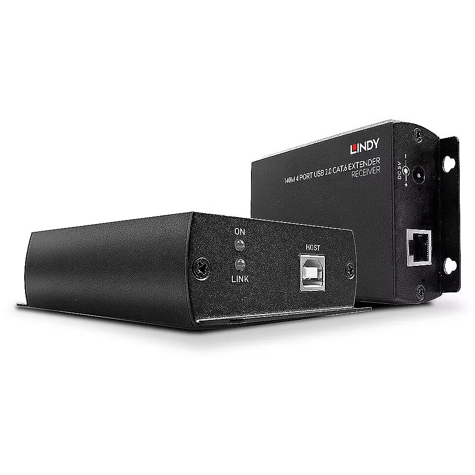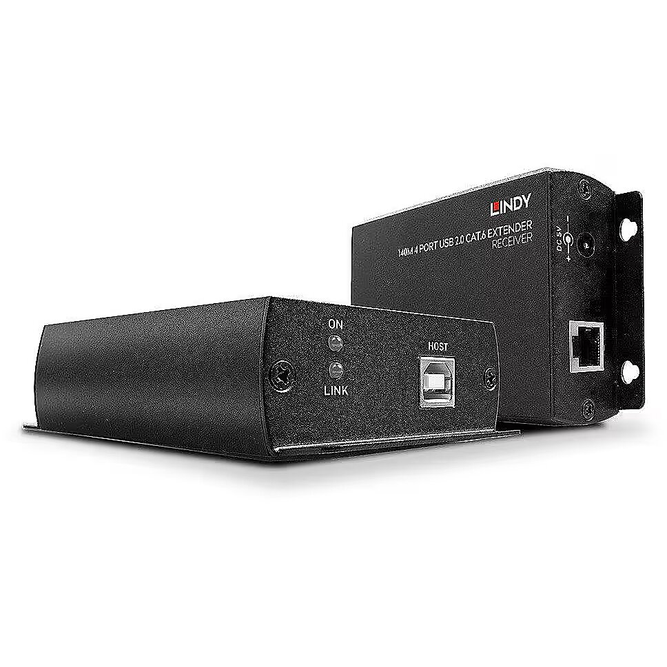 LongDesc - The Lindy USB 2.0 Cat.6 Extender extends the distance between four USB peripheral devices and a PC over distances up to 140m using a single Cat.6 UTP or higher network cable. Cat.5e UTP/STP cable can be used in lengths up to a maximum of 120m. For best performance and compatibility, we recommend the use of solid core patched cables. For best performance and compatibility, we recommend the use of solid core patched cables.This Extender is a two-part hardware solution comprising of a transmitter that connects directly to your computer and a receiver that connects to the USB device.With a robust aluminium housing and mounting points, it is the ideal solution for providing remote access to printers, scanners, webcams* and external HDD and flash drive storage. The Extender is also perfect for digital signage applications, home network integration, industrial control, security, USB device sharing, and KVM extension. The included power supply for the receiver unit ensures secure and uninterrupted power to all devices.*tested with Logitech C310, Logitech C920e, V-Gear Talkcam LIVE 09-VTL480, I-Family IF-008B For the latest firmware fixing compatibility issue, please contact our support team.Please note: Through the use of the Signal Repeater No. 42709 distances can be doubled up to 280m.Information about USB 3.0, 3.1 and 3.2USB 3.0, USB 3.1 and USB 3.2 PCs, cables and devices are all compatible with each other, when using either a USB Type A or USB Type C host interface.USB 3.0, USB 3.1 Gen 1 and USB 3.2 Gen 1 all support data transfer rates up to 5 Gbps. USB 3.1 Gen 2 and USB 3.2 Gen 2 both support data transfer rates up to 10 Gbps.