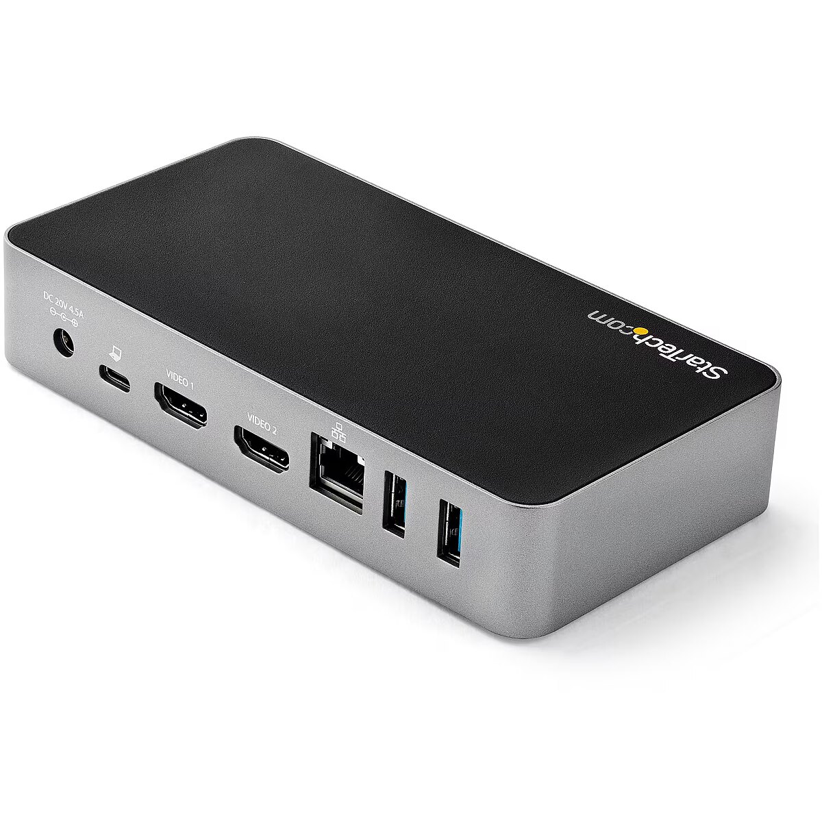 LongSummaryDescription - StarTech.com USB-C Dock - Dual Monitor 1080p HDMI Laptop Docking Station - 65W Power Delivery - 1x USB-C, 3x USB-A, Ethernet - Dual Video Display USB 3.1 Gen 1 Type-C Dock - Mac & Windows. Connectivity technology: Wired, Host interface: USB 3.2 Gen 1 (3.1 Gen 1) Type-C, USB Power Delivery up to: 60 W. Ethernet LAN data rates: 10,100,1000 Mbit/s. Product colour: Black, Silver, Data transfer rate: 5 Gbit/s, HD type: Full HD. AC input voltage: 100 - 240 V, Input current: 1.5 A, Output voltage: 20 V. Windows operating systems supported: Windows 10, Windows 10 Education, Windows 10 Education x64, Windows 10 Enterprise, Windows 10..., Mac operating systems supported: Mac OS X 10.15 Catalina, Mac OS X 11.0 Big Sur, Mac OS X 12.0 Monterey, Mac OS X 13.0 Ventura, Linux operating systems supported: Ubuntu 18.04 LTS, Ubuntu 20.04 LTS