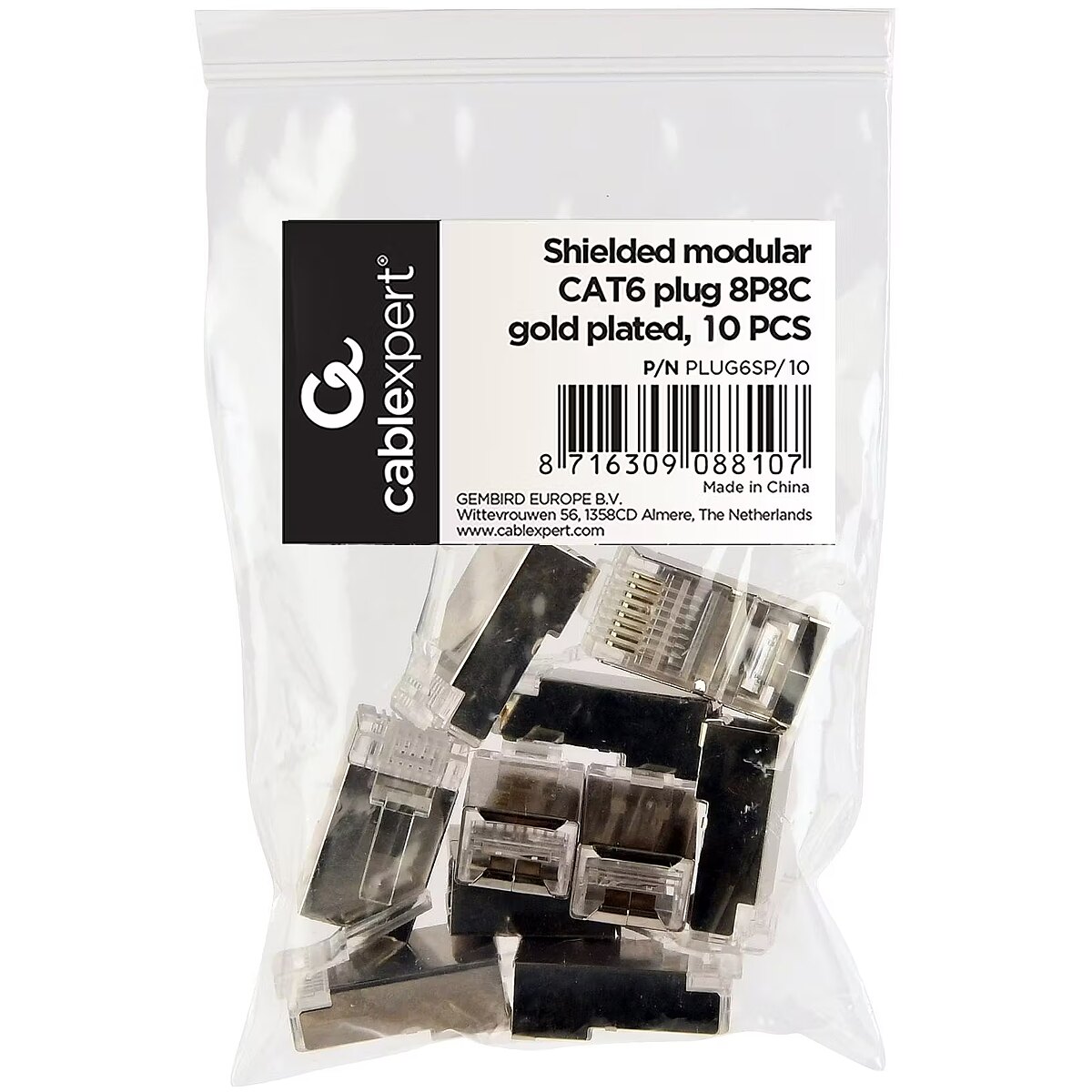Cablexpert PLUG6SP/10 Shielded modular CAT6 plug 30u" gold plated, 10 pcs per bag |