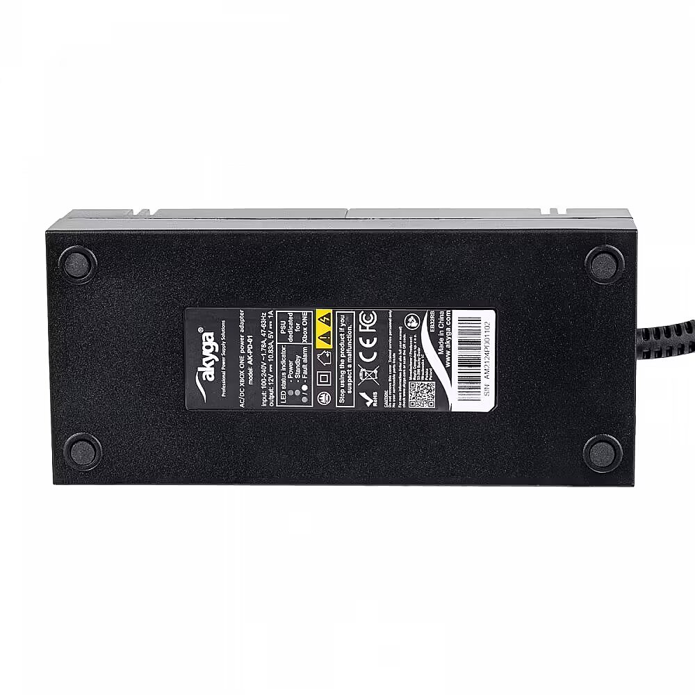 Description - Akyga AK-PD-01 is a reliable replacement for a damaged power supply unit for Xbox One. Parameters of 12 V / 10.83 A (135 W) and dedicated power connector guarantee compatibility with Microsoft consoles. The built-in low-noise fan effectively draws warm air out of the case. So, the PSU components do not overheat and you can enjoy long gaming sessions without any problems!   On the side of the PSU, there is an LED light that, just like in the original version, informs about the operating status. Red indicates readiness for connection, while green indicates the correct connection of the power supply to the console. In addition, the power supply also has a standby mode that keeps power consumption to a minimum when the console is not in use. The power adapter is not compatible with the Xbox One S and Xbox One X. Note: No power cable included.