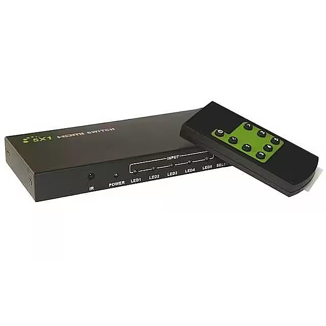 LongDesc - - HDMI switch that lets you share HDMI sources with a single HD monitor.- Allows you to switch between 5 HDMI sources such as BlueRay player, DVD player and various game console to a TV with HDMI input with ease.- Transmits both digital and audio signals through the HDMI connection.- Supports Full HD 1080p, and 4Kx2K 3D.- With built-in HDCP for Instant Port Switching (IPS), this switch allows you to connect 5 different HDMI devices to a LCD or plasma screen very quickly, without having to redo the HDCP authentication.- The selection is done by remote control and an LED indicates which input is selected.Features- Plug and Play: does not require configuration- Broadcast audio and video via HDMI- Signal transmission up to 3.4 Gbps- HDMI resolution up to 4Kx2K and UXVGA until 1920x1200P- Transmission distance: 2 meters