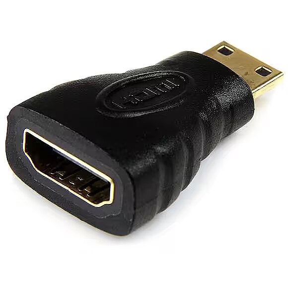 ShortSummaryDescription - StarTech.com Mini HDMI to HDMI Adapter - 4K High Speed HDMI Adapter - 4K 30Hz Ultra HD High Speed HDMI Adapter - HDMI 1.4 - Gold Plated Connectors - UHD Mini HDMI Adapter 4K - Black, Mini HDMI, HDMI, Black