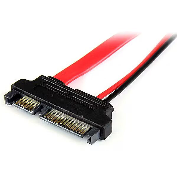 LongDesc - Connect a Slimline SATA optical drive up to 6in away from a standard SATA motherboard connectionThe SLSATAADAP6 Slimline SATA to SATA adapter features a Slimline Serial ATA connector on one end and a standard SATA data connector (with SATA power connector) on the other, enabling you to connect a Slimline SATA optical drive to standard motherboard and power supply connections.The slim SATA adapter offers 6-inches in cable length, which compared to standard (non-cable) SATA/Slimline SATA adapter reduces strain off the drive connector and allows for flexible cable routing when positioning the Slimline SATA drive within the system case.Designed and constructed to provide a dependable Slimline SATA to SATA connection, this high quality cable is backed by StarTech.com's Lifetime Warranty.The StarTech.com Advantage- Cost-effective way to connect a Slimline SATA optical drive to a standard SATA motherboard, using standard SATA cables- The 6-inch cable format reduces strain on, and prevents damage to the Slimline SATA drive connector and provides flexibility to position your Slim SATA drive as needed within your system case- Backed by StarTech.com lifetime warranty