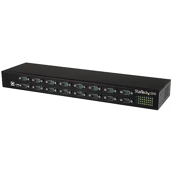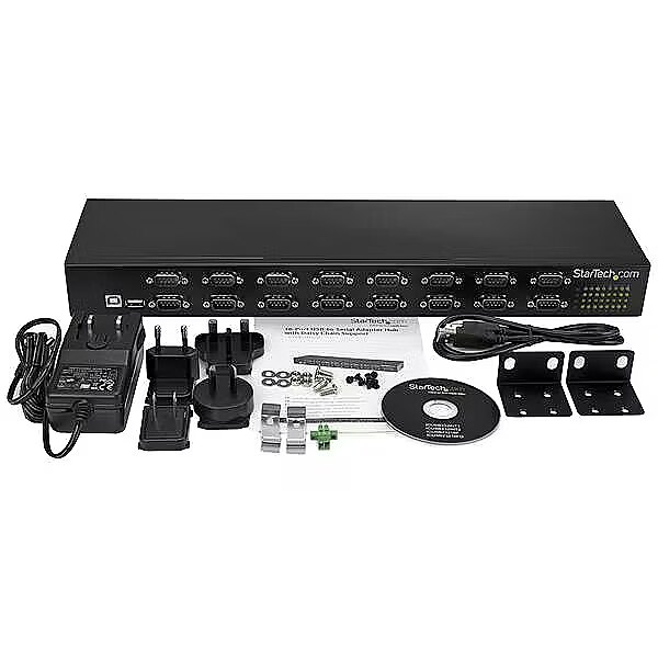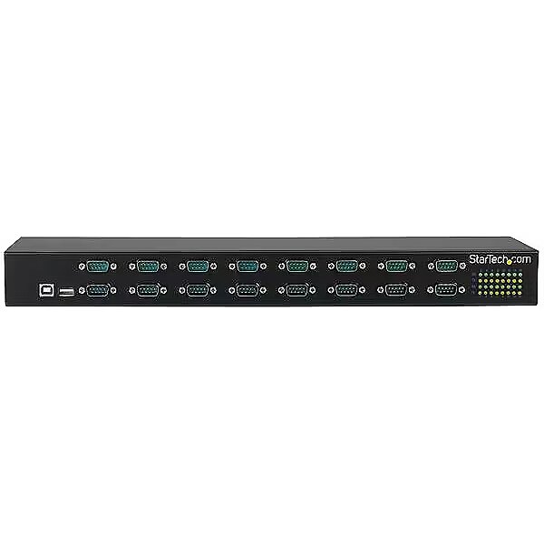 LongDesc - Convert a USB port into 16 RS232 serial ports in an industrial rack-mountable chassis - and daisy chain multiple hubs for a scalable solutionHere's an easy and cost-efficient way to add RS232 serial capability to your industrial setting. This 16-port USB-to-serial adapter hub features a sturdy, rack-mountable chassis, and supports daisy chaining, so you can connect multiple hubs together to increase your serial device port count.A scalable solution for changing needsThis rack-mountable USB serial hub lets you add 16 serial ports (RS232), with full control from your desktop or laptop computer system using a single USB port. The daisy-chain function gives you a cost-effective and scalable way to increase your serial port count and expand as your needs grow, without investing in a higher cost serial hub.Providing full control of your serial components from a single device, the USB serial hub is ideal for a multitude of applications including: industrial automation, self-serve automated kiosks, and monitoring of cameras and security systems.Built-in convenienceThe hub features COM port retention, which retains the assigned serial COM port values. This ensures that the same values are automatically re-assigned to the port provided by the adapter, in the event it is disconnected and re-connected to the host computer.Meets the demands of industrial environmentsWith its all-metal chassis, this rugged, rack-mountable hub fits into standard 19-inch server storage racks to provide an efficient industrial serial solution. It supports an extended operating temperature range of -40°C to 85°C (-40°F to 185°F); ensuring reliable performance even in the harshest environments. The USB-serial hub includes both an AC adapter and terminal block power, providing versatile power options.The StarTech.com Advantage
